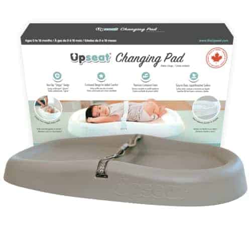 El cambiador de bebé Upseat ofrece a los padres una solución segura y cómoda para cambiar los pañales de sus pequeños. Con un diseño antideslizante «Grippy», este cambiador mantiene al bebé en su lugar de forma segura durante cada cambio de pañal, proporcionando una superficie estable. La forma contorneada y la espuma acolchada de primera calidad garantizan que tu bebé esté cómodo y apoyado en todo momento. La superficie impermeable y resistente a líquidos es fácil de limpiar y no absorbe líquidos ni olores, lo que garantiza un ambiente higiénico para tu bebé. Fabricado con cuidado en Canadá, este cambiador de bebé combina un diseño pensado y materiales premium para padres y bebés exigentes.