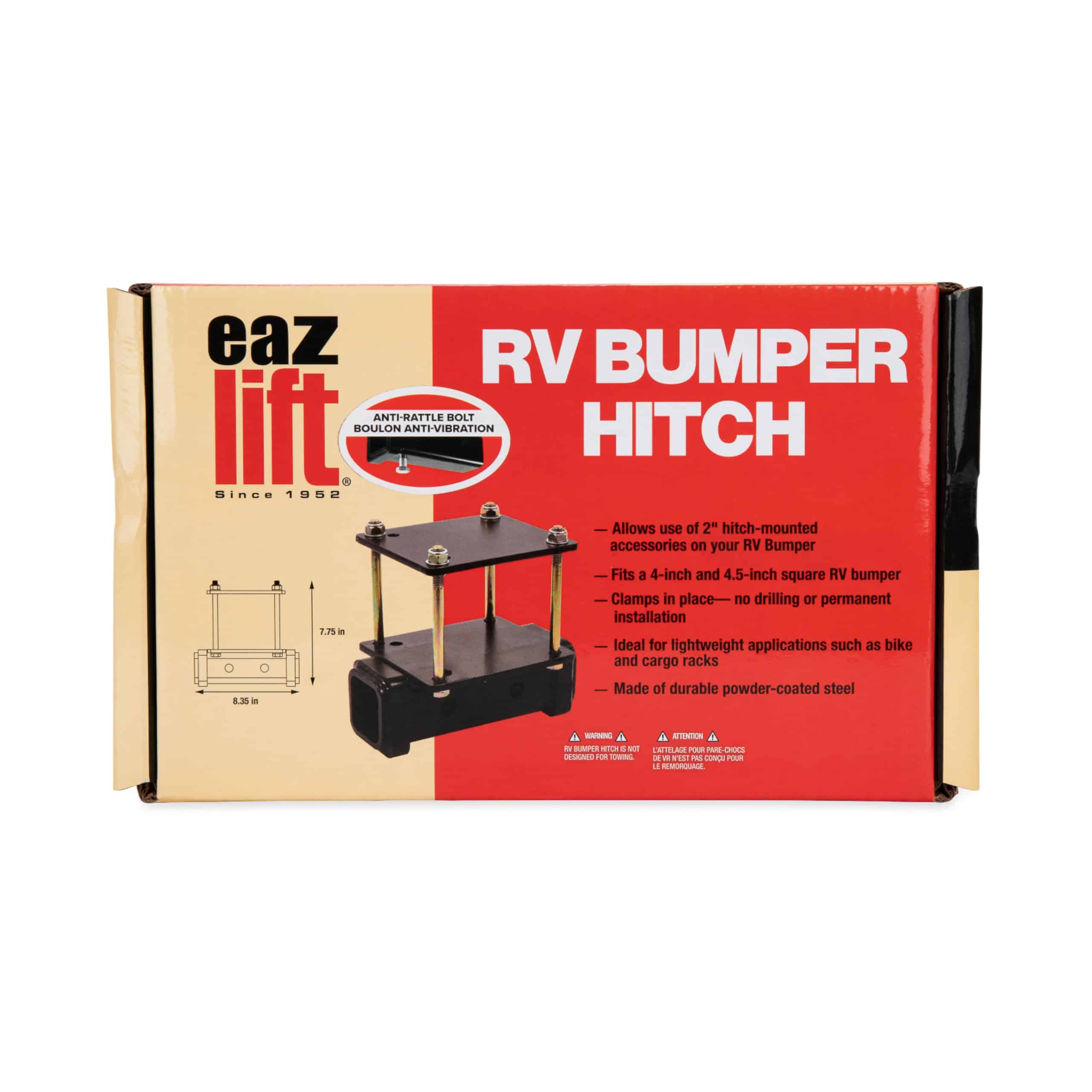 Mejora tus aventuras al aire libre con el Enganche de Parachoques de Caravana Cuadrado Eaz-Lift de Camco. Este versátil enganche convierte tu parachoques de caravana cuadrado de 4″ o 4 1/2″ en un cómodo receptor de enganche sin necesidad de perforar ni instalación permanente. Ideal para aplicaciones ligeras (como racks de bicicletas y carga), el receptor de enganche de 2 pulgadas está listo para satisfacer tus necesidades de carga. Fabricado con acero revestido de alta resistencia, este enganche para caravana está construido resistente para resistir los elementos y resistir la corrosión. Di adiós a las instalaciones ruidosas con los pernos antirruido incluidos. Con dimensiones de 7 3/4″ (T) x 8 3/8″ (W), este enganche está específicamente diseñado para fines no remolque. Eleva tu experiencia de viaje hoy con la conveniencia y confiabilidad inigualables del Enganche de Parachoques de Caravana Cuadrado Eaz-Lift. ¡Actualiza tus aventuras con este increíble accesorio para caravana fuera de la carretera!