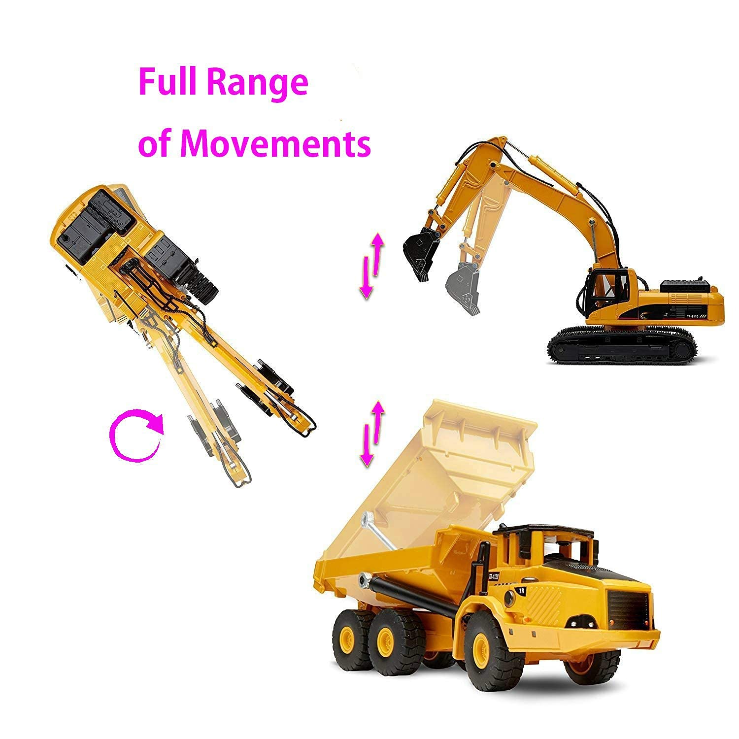Tamaño de la caja : aprox 16.5″(L) 3″(W) 7″(H); Se ve muy grande, es más como una máquina de construcción real. Material: Hecho de aleación de zinc de la más alta calidad ABS (excepto por las llantas de goma), Capaz de resistir golpes violentos de los niños.