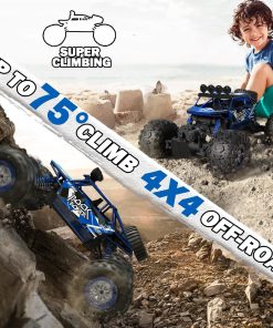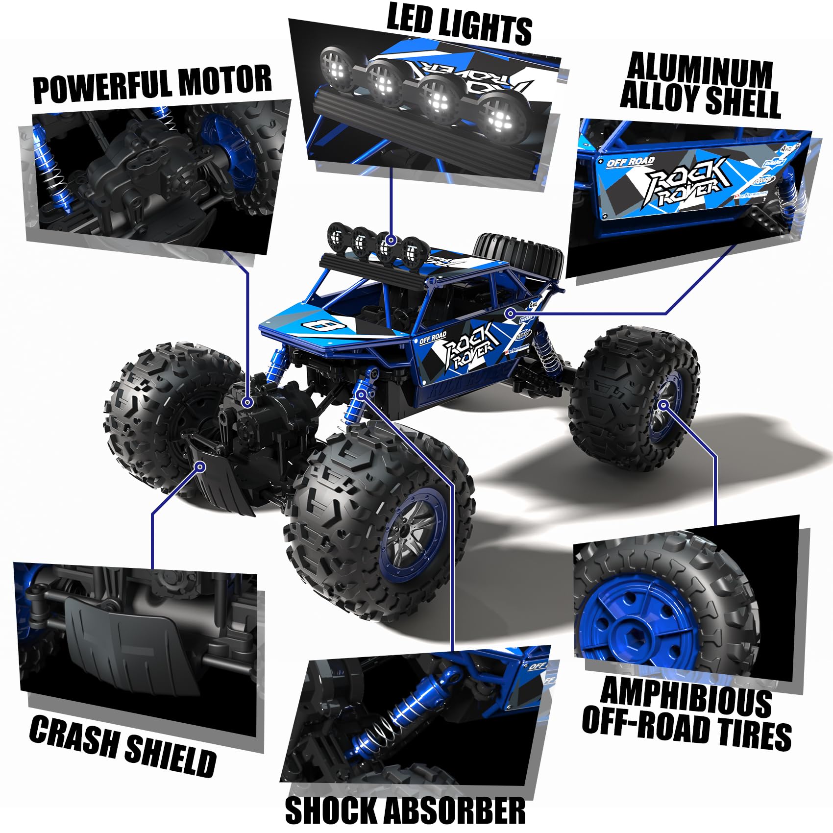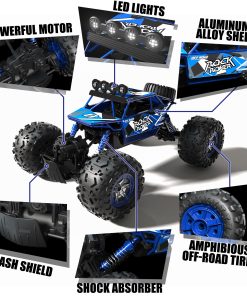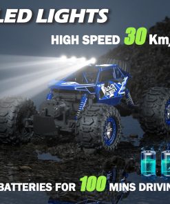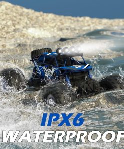 Camión RC Anfibio Grande 1:10, Impermeable IPX6 30 Km/h 4×4 Todo Terreno, Crawler de Roca RC, Monster Truck RC con carcasa de aleación de aluminio y luz LED, Coches RC Todo Terreno de 2.4GHz con 2 Baterías 100 Minutos de Juego (Azul)