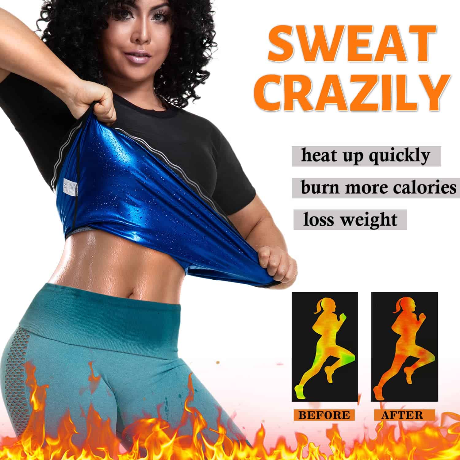 1. INNOVADOR TEJIDO DE COMPRESIÓN ABSORBENTE DEL CALOR: Solo las camisetas deportivas para mujeres de LMCOB están hechas de tejidos mejorados que generan calor, lo que puede hacerte sudar rápidamente durante las tareas domésticas o el ejercicio. Las camisetas de sauna para mujeres pueden crear una experiencia como en un sauna caliente. La temperatura de tu cuerpo aumentará, por lo que sudarás más, ayudándote a eliminar toxinas de tu cuerpo, perder agua y perder peso a gran velocidad, alcanzando objetivos de pérdida de peso.