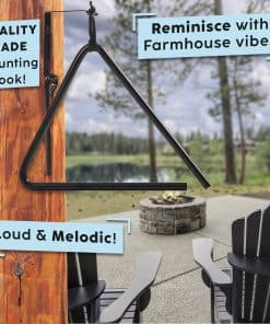 Inspirada en los tradicionales triángulos de cena utilizados en cada Casa de Cocina de Vaqueros y Carros de Churros para llamar a los hombres a las comidas. Esta campana de llamado a la cena sería un fabuloso regalo para un amigo o familiar que tiene pasión por los días pasados en la pradera. Si estás buscando una campana de cena triangular simple pero rústica para esa pieza de recuerdo para tu hogar o aventuras al aire libre, no busques más que la campana de cena triangular de Backyard Accessories. La forma triangular de la campana de cena hace un gran cruce de tres toques. Su diseño único y sonido seguramente complacerá tanto a jóvenes como a mayores y plantará recuerdos amorosos de por vida. El colgador de la campana de cena es duradero y cuelga sin problemas al usar el montaje en pared. La campana de cena es adecuada para la vida al aire libre. La forma triangular de la campana de cena hace un gran cruce de tres toques.