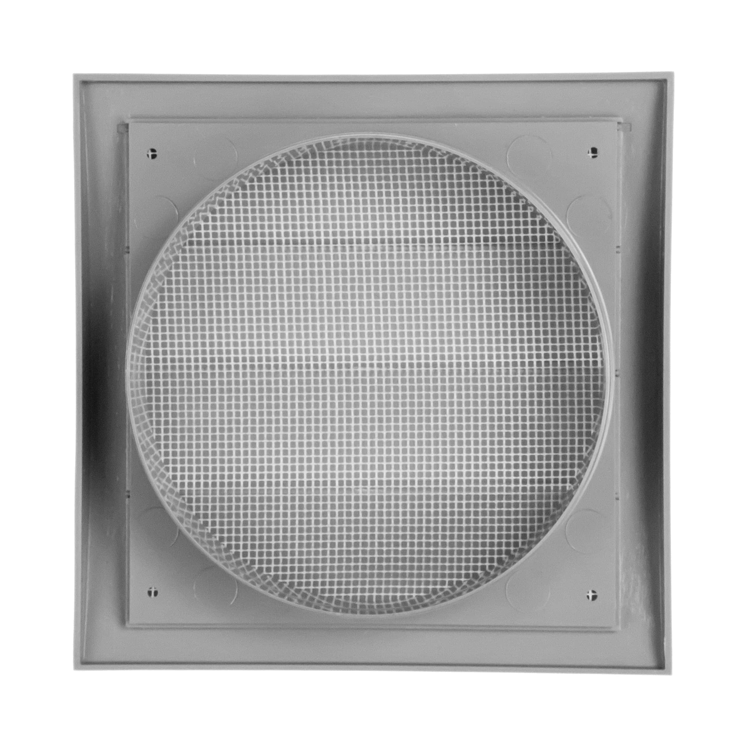 Campana de escape gris de 6 pulgadas con rejilla de protección contra plagas integrada y brida, cubierta de ventilación de aire fresco fácil de instalar: cubierta de conducto de escape de ventilación HVAC, tapa de escape. Los componentes de plástico pintable contienen estabilizadores UV estándar para reducir la decoloración causada por la exposición al sol. Ayuda a evitar que el viento, la lluvia y la nieve ingresen a las salidas de secadoras exteriores. Diseñado para máximo flujo de aire, es una gran mejora para el hogar. Se ajusta a un diámetro de tubo / tubería de 6 pulgadas / abertura de ventilación. Las dimensiones exteriores de la placa de la cubierta de la tapa son 7,48 x 7,48 pulgadas.