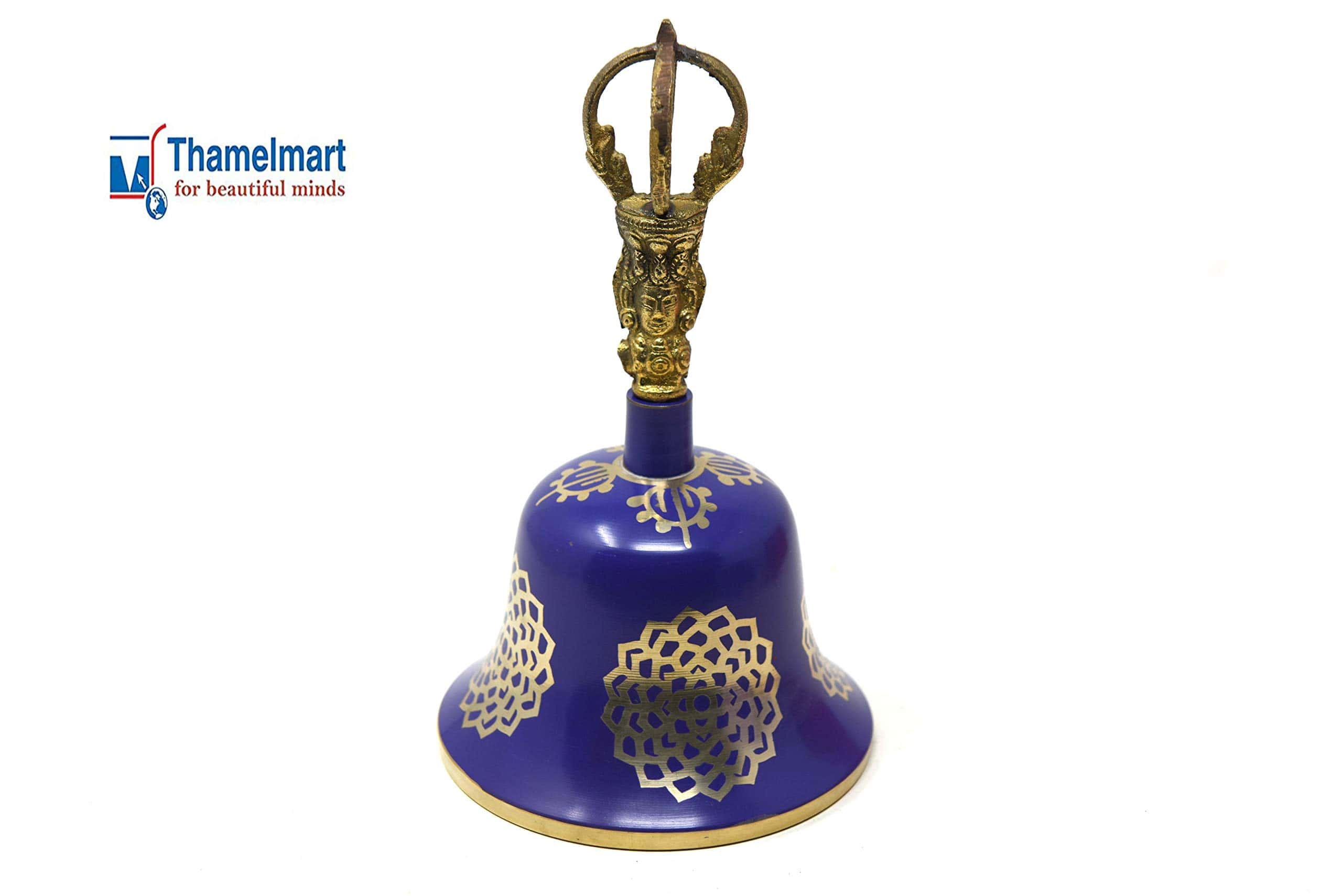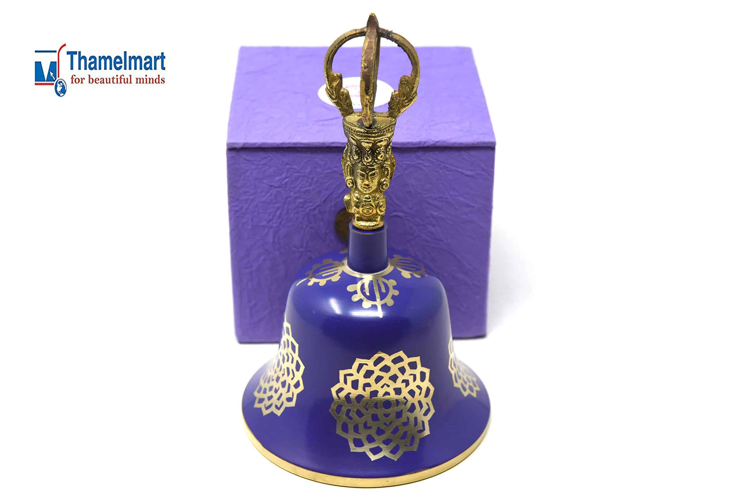Las campanas representan los principios masculino y femenino en el cosmos y en el cuerpo energético de los individuos. La campana siempre se sostiene en la mano izquierda, ya que estas son los lados de los canales derecho e izquierdo en el cuerpo. La campana mide aproximadamente 8 pulgadas de alto. Fabricada en bronce de estilo tibetano de calidad, hecha en Nepal.