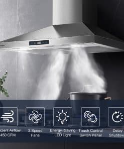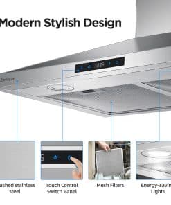 La campana extractora de 30 pulgadas de acero inoxidable para la cocina es la solución perfecta para mantener la cocina limpia y fresca mientras cocina. Con un potente motor de 450 CFM, esta campana es capaz de capturar eficazmente la grasa, los humos y los olores de la cocina. La campana de pared está fabricada con acero inoxidable cepillado de grado 430 de alta calidad, con un grosor de calibre 20 que es fácil de limpiar y que no muestra huellas dactilares, lo que garantiza que se mantenga luciendo impecable. Esta campana es perfecta para cocinas con y sin ducto, proporcionando un ambiente libre de olores y humo. Cuenta con una función de apagado programado que ayuda a eliminar el humo restante de la cocina una vez que haya terminado de cocinar. Además, los filtros de aluminio de 5 capas son fáciles de quitar y limpiar, garantizando que la campana siempre mantenga una eficiencia óptima. Con una cubierta de chimenea ajustable, esta campana es ideal para techos bajos y altos, adaptándose perfectamente a diferentes alturas. No espere más, haga que su experiencia de cocina sea más agradable con esta campana extractora de alta calidad.