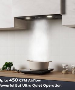 1. POTENTE PERO SILENCIOSA: Campana extractora insertable con 450 CFM, elimina eficazmente humo y olores. Funcionamiento silencioso, máximo de 8.5 Sones en la velocidad más alta.