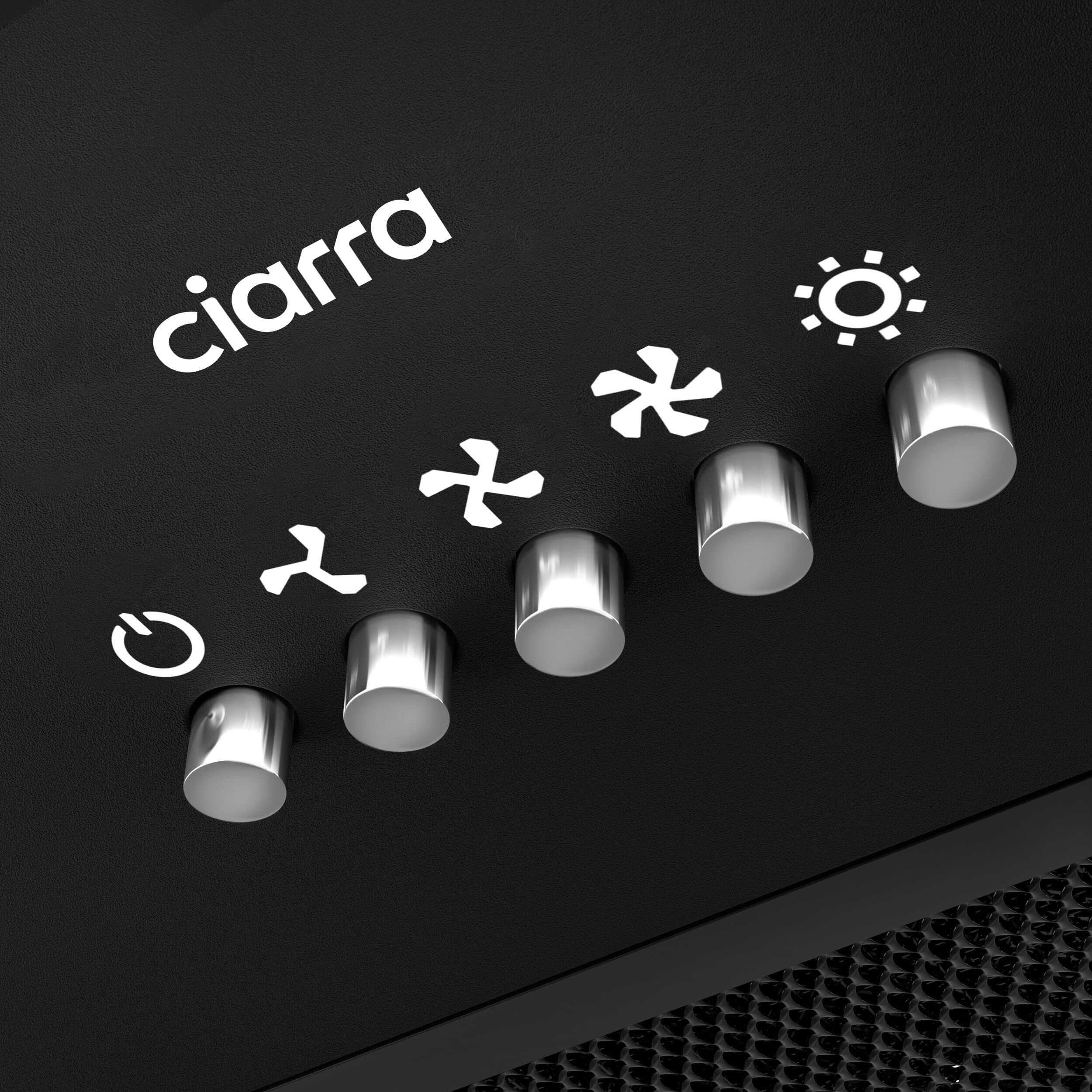 5. DISEÑO AMIGABLE PARA EL USUARIO: Campana extractora incorporada con botón de presión mecánico para un control conveniente. Fácil de limpiar, con una larga vida útil. La campana CIARRA ofrece una garantía limitada de 2 años contra cualquier defecto.