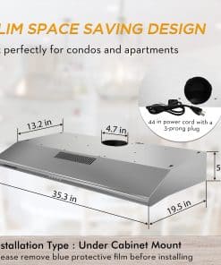 Campana Extractora de Cocina bajo gabinete de 36 pulgadas