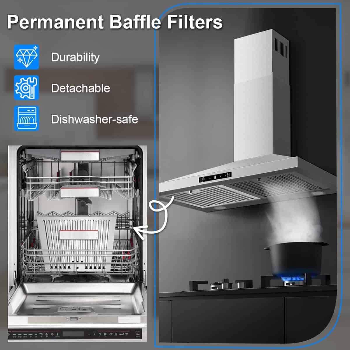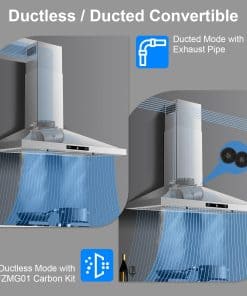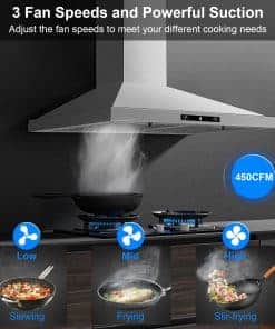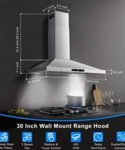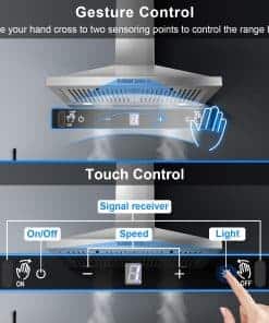 La campana extractora de pared Zomagas de 30 pulgadas es la solución perfecta para mantener su cocina limpia y libre de olores no deseados. Con un motor potente de 450 CFM y un diseño de acero inoxidable cepillado fácil de limpiar, esta campana extrae eficientemente la grasa, humos y olores de la cocción. Gracias a la función de sensor de gestos, ajustar la potencia y la velocidad del ventilador es tan fácil como agitar la mano. La función de apagado retardado ayuda a eliminar los olores residuales de la cocina después de cocinar. La campana se puede configurar tanto con conducto como sin conducto, y los filtros de acero inoxidable tipo baffle son fáciles de quitar y limpiar para mantener la campana en óptimas condiciones. Disfrute de una cocina fresca y limpia con la campana extractora Zomagas de 30 pulgadas.