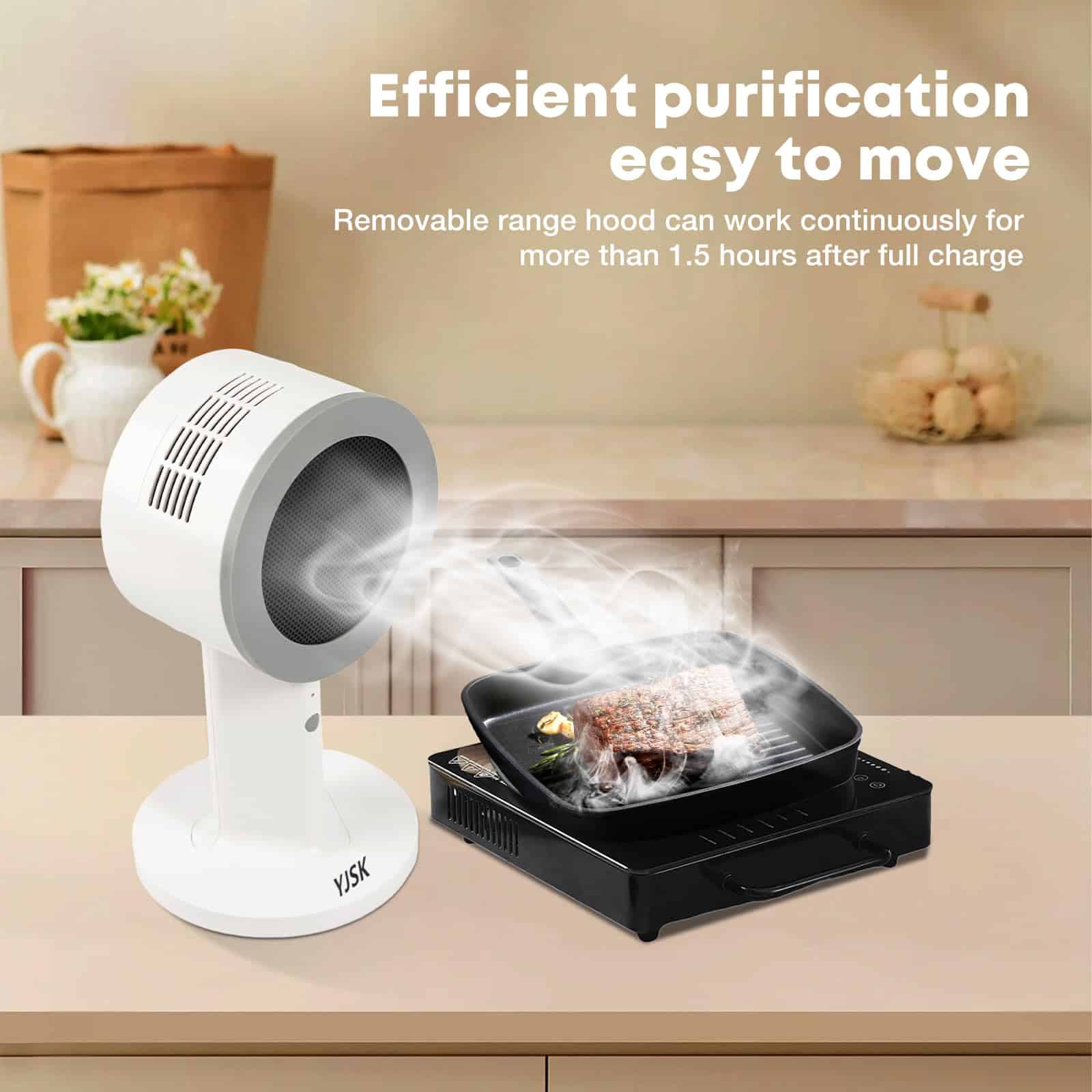 2. No es necesario enchufarlo, fácil de mover: En comparación con las campanas extractoras tradicionales grandes, nuestra pequeña campana extractora de sobremesa no necesita estar conectada a la corriente y se puede mover y utilizar libremente, lo que la hace conveniente y flexible. Ya sea en la cocina, en un RV, en una barbacoa al aire libre o en un picnic al aire libre en casa, es fácil de transportar y usar.