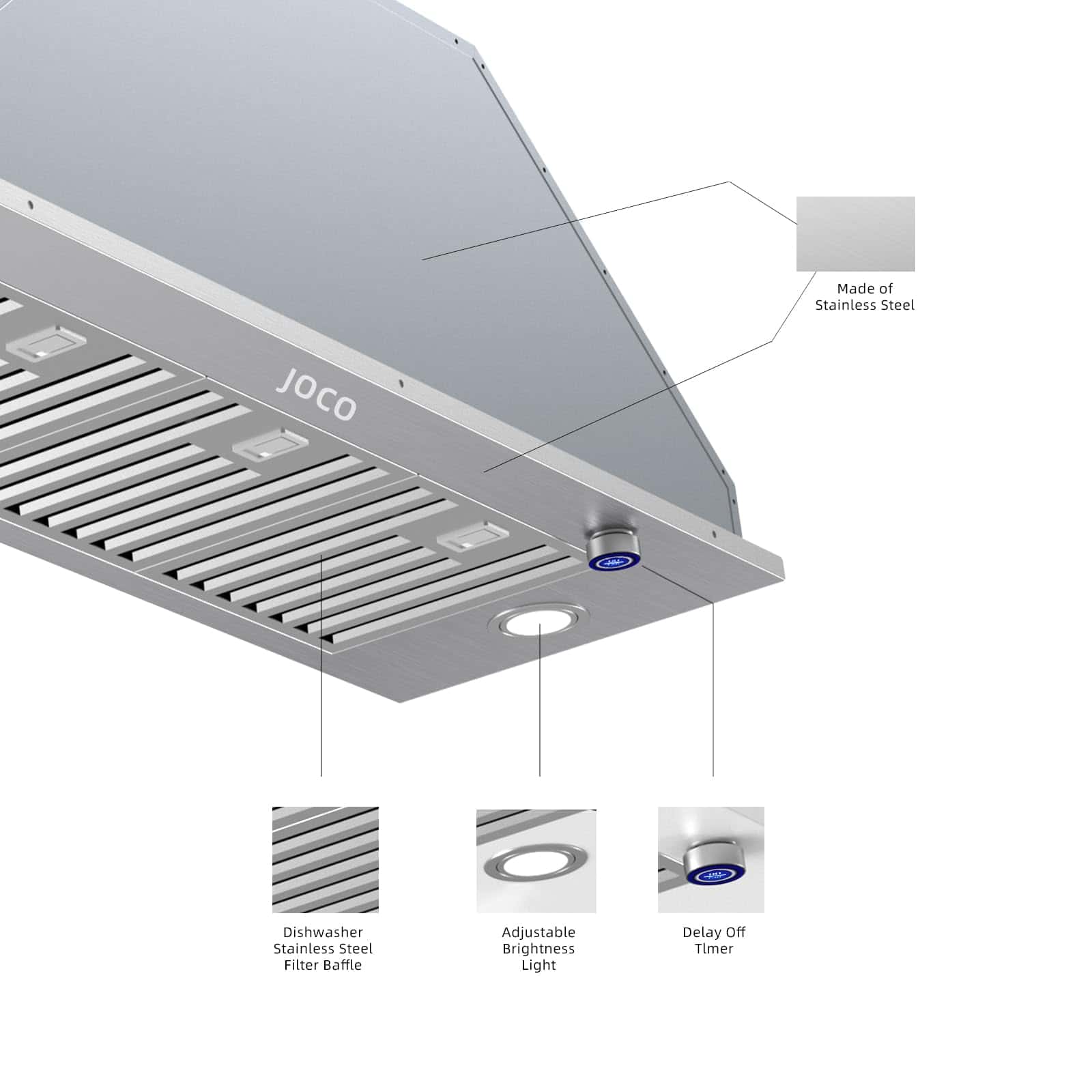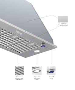 DISEÑO MODERNO: La campana extractora incorporada JOCO está hecha de acero inoxidable, presenta un aspecto elegante y generoso, nuevo controlador de tipo perilla, eliminando la necesidad de sistemas de control complejos, la operación es más simple y conveniente.