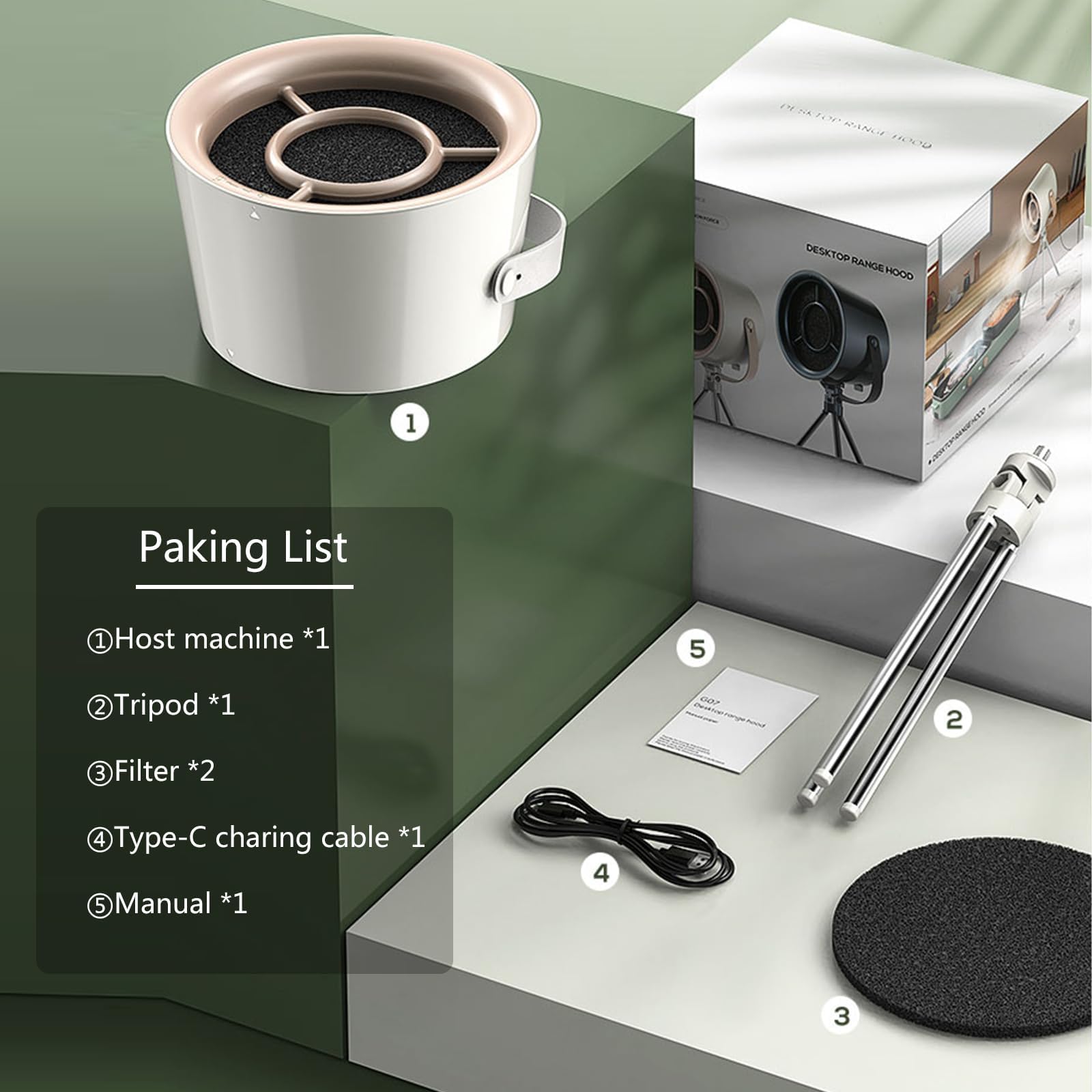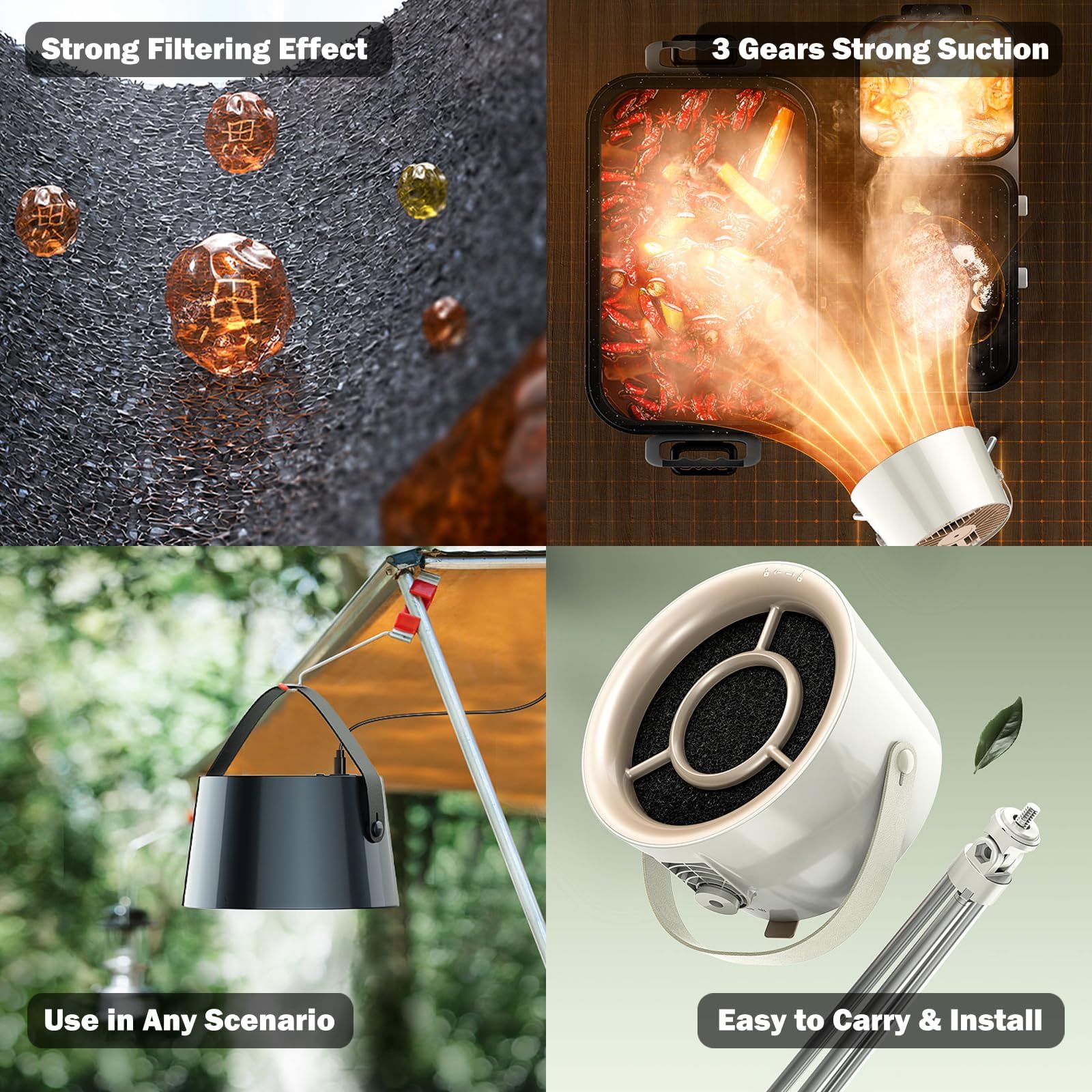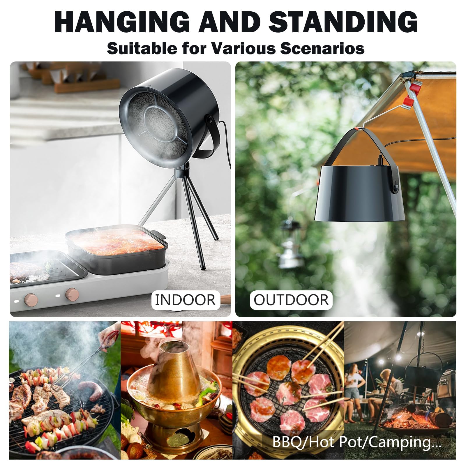4. Uso Versátil Adecuado para entornos interiores y exteriores. Ofrece una amplia gama de aplicaciones. Puede utilizarse en salas de estar, cocinas, habitaciones mal ventiladas, dormitorios, RV y durante el camping. Ya sea que esté disfrutando de una barbacoa o un olla caliente en la sala de estar o comiendo al aire libre, se adapta a cualquier estado de ánimo. Cuando acampe, absorbe el humo de aceite de manera conveniente, evitando el malestar por irritación ocular y tos. Esto permite una experiencia culinaria sin preocupaciones, sin la preocupación de que el maquillaje se vea afectado por los humos de aceite.