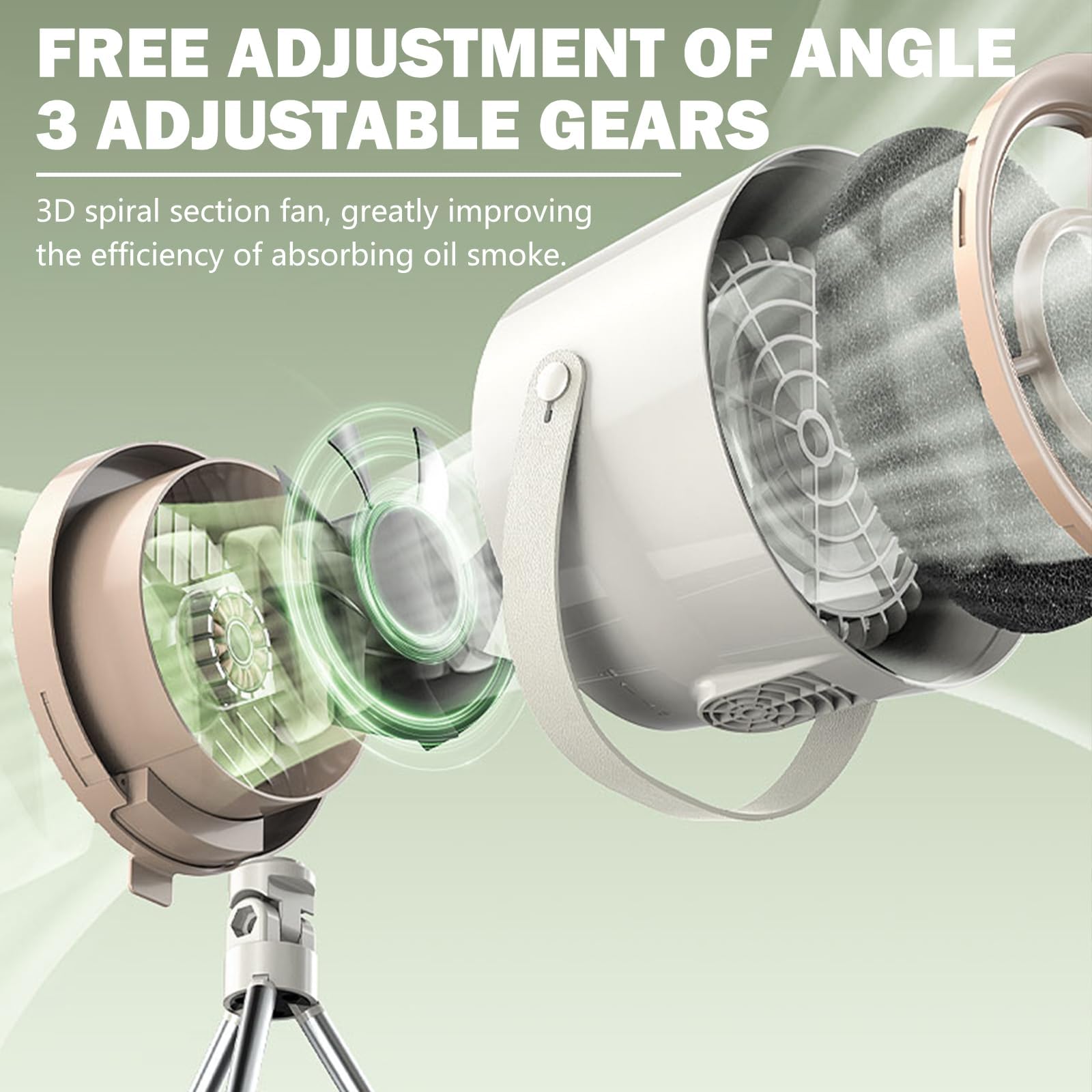 1. Potente Succión y Ángulo Ajustable La campana extractora portátil se puede encender con solo un botón, ofreciendo alta eficiencia de trabajo y 3 engranajes ajustables con potencia de succión fuerte. Permite el ajuste libre del ángulo de la cabeza para eliminar eficazmente el humo de aceite, haciéndolo más eficiente para espacios específicos y necesidades de cocción.