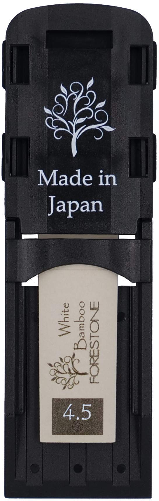 El material Forestone es una mezcla de resina sintética y fibra de madera, más del 50 por ciento de la cual es bambú. Es insípido, inodoro y no tóxico. El sonido excepcional, la resistencia y la flexibilidad de las cañas Forestone se deben principalmente a este material especial. Las cañas Forestone están hechas mediante un proceso patentado desarrollado en Japón que resulta en calas óptimamente suaves que son uniformes y consistentes, de caña a caña. Están perfectamente equilibradas de lado a lado y de adelante hacia atrás. El perfil se estrecha hasta llegar a un grosor de 0.1 mm en la punta. Al ser expuestas a la luz, las cañas muestran la clásica forma de U invertida asociada con las cañas de caña. La diferencia en el tacto entre Forestone y la caña es mínima. Dicho esto, recomendamos tomarse un tiempo para familiarizarse con Forestone, de la misma manera que haría con cualquier equipo nuevo. La resistencia al soplido se puede ajustar con las cañas Forestone elevando o bajando ligeramente la caña en la mesa del boquillero (bajando menos resistencia, subiendo más resistencia). El material también es lo suficientemente duro como para poder utilizar las herramientas de ajuste de cañas habituales. La vida de una caña Forestone variará de jugador a jugador, pero durará más que la caña, ya que el material es impenetrable al deterioro por la saliva y no se deformará debido a cambios en la humedad o altitud. Sin embargo, después de cierto número de horas, las cañas comenzarán a sentirse menos vivas y sensibles. Esto indica que ha llegado el momento de retirar la caña en favor de una nueva. MODELOS Tradicional: corte francés y muy fácil de tocar. Tiene un sonido brillante y redondo. Hinoki: corte americano sin limar, para una respuesta vibrante y un sonido libre. Más carácter y rango dinámico que el modelo Tradicional. Bambú Negro: corte francés con más resistencia y control. Produce un sonido clásico oscuro. Bambú Blanco: corte francés con una respuesta vibrante y un sonido libre. Este es el todo terreno, hecho para ser utilizado en todos los estilos.