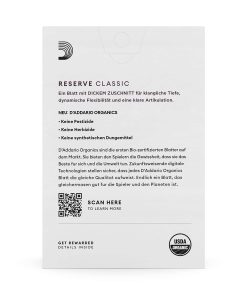 Como la primera caña orgánica certificada, D’Addario Organics ofrece a los músicos un nuevo nivel de confianza y seguridad junto con tecnología digital de próxima generación para garantizar que cada caña D’Addario Organics ofrezca una consistencia inigualable. Elaboradas con un blanco más angosto y cono de blanco, las cañas D’Addario Organics Reserve Classic Deutsche Klarinette están específicamente diseñadas para boquillas alemanas, aunque también son adecuadas para ser utilizadas en boquillas francesas, así como en clarinete en Mi bemol y en instrumentos de periodo temprano.