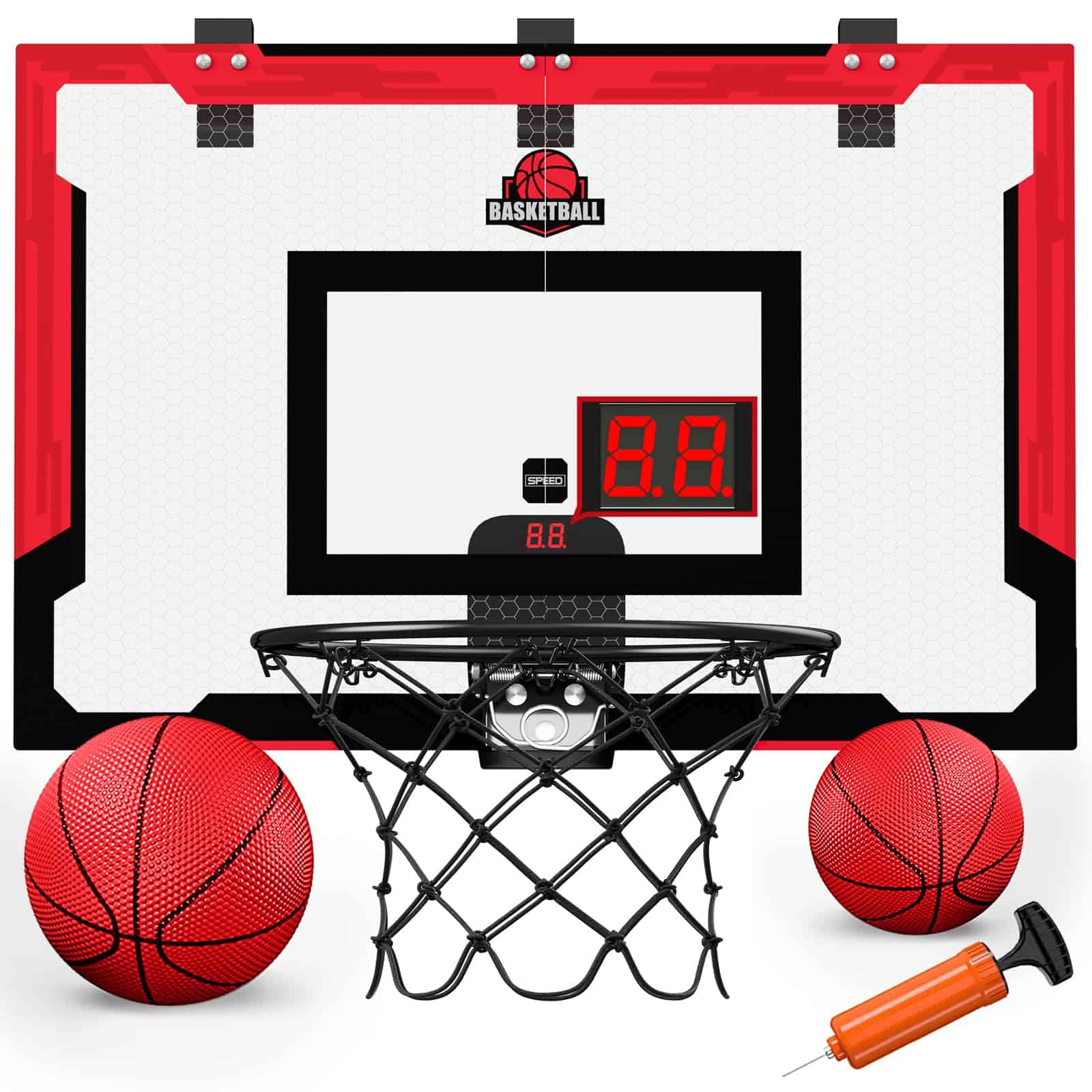 2. Tablero de puntuación electrónica de baloncesto – 2 modos de juego: 60 segundos de cuenta regresiva, 5 segundos de cuenta regresiva, con puntuación electrónica y efectos de sonido alegres. Cada gol es aclamado y la puntuación se muestra digitalmente. ¡Es un juego de baloncesto divertido para toda la familia!