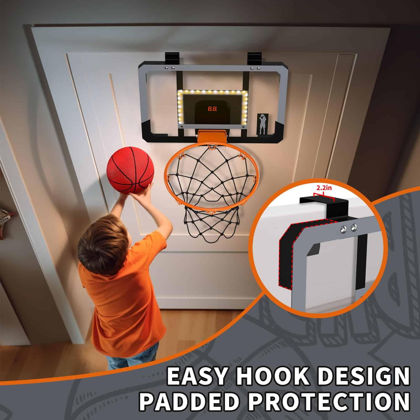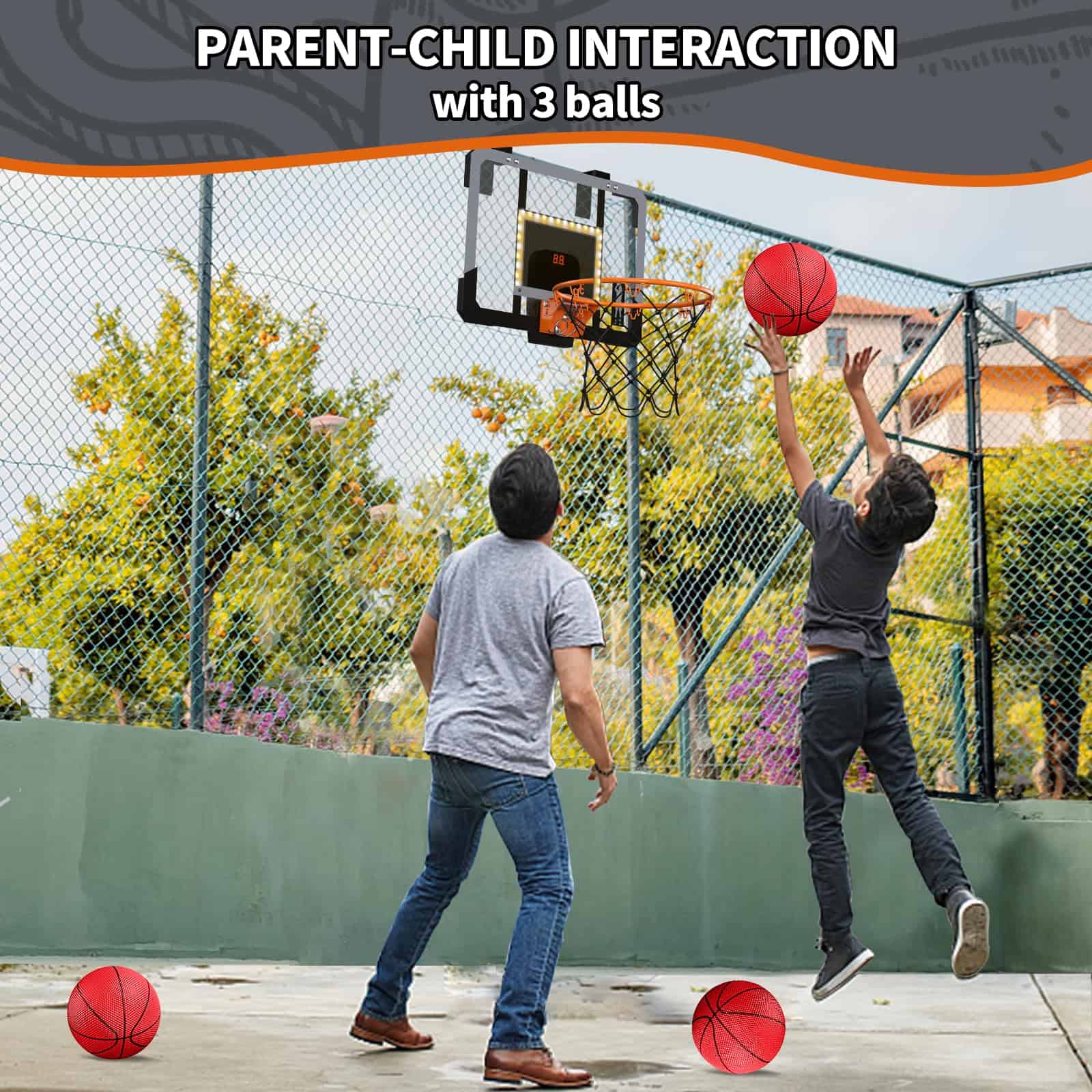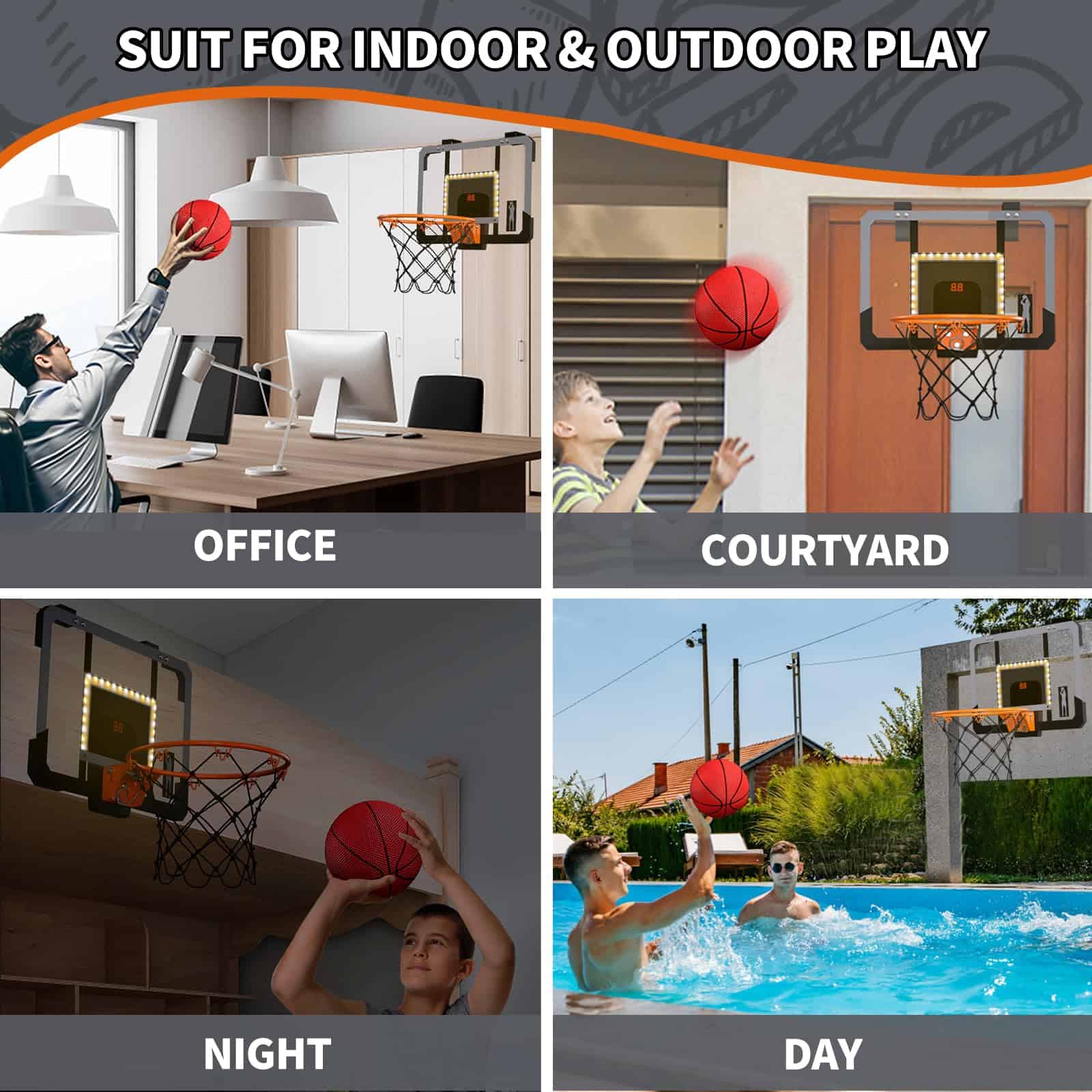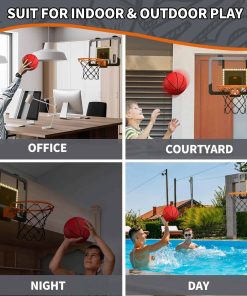 1. LED LIGHT & ELECTRONIC SCOREBOARD – ¡Anima tus anotaciones incluso en la oscuridad! Con 2 modos de juego: 60S de cuenta atrás 5S de cuenta atrás, añade más diversión y desarrolla el interés de los niños por el baloncesto. Con cada gol, animará y contará puntos para tus hijos. ¡Disfruta de la nueva forma de jugar después de que se ponga el sol!.
