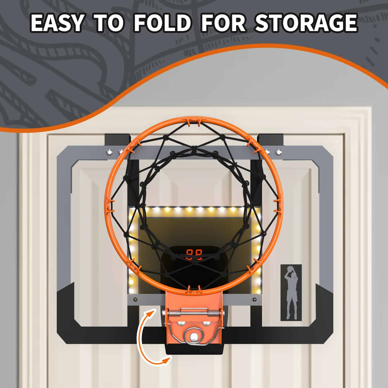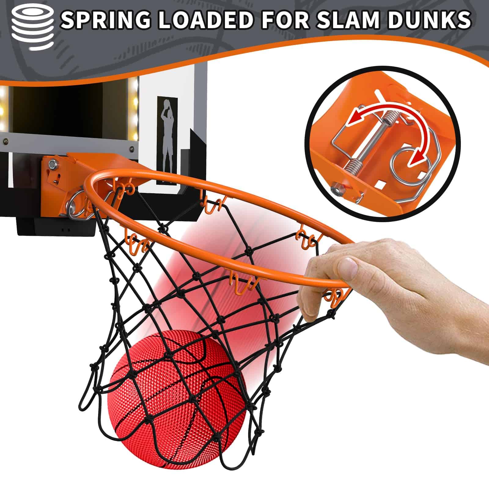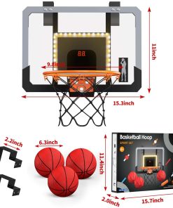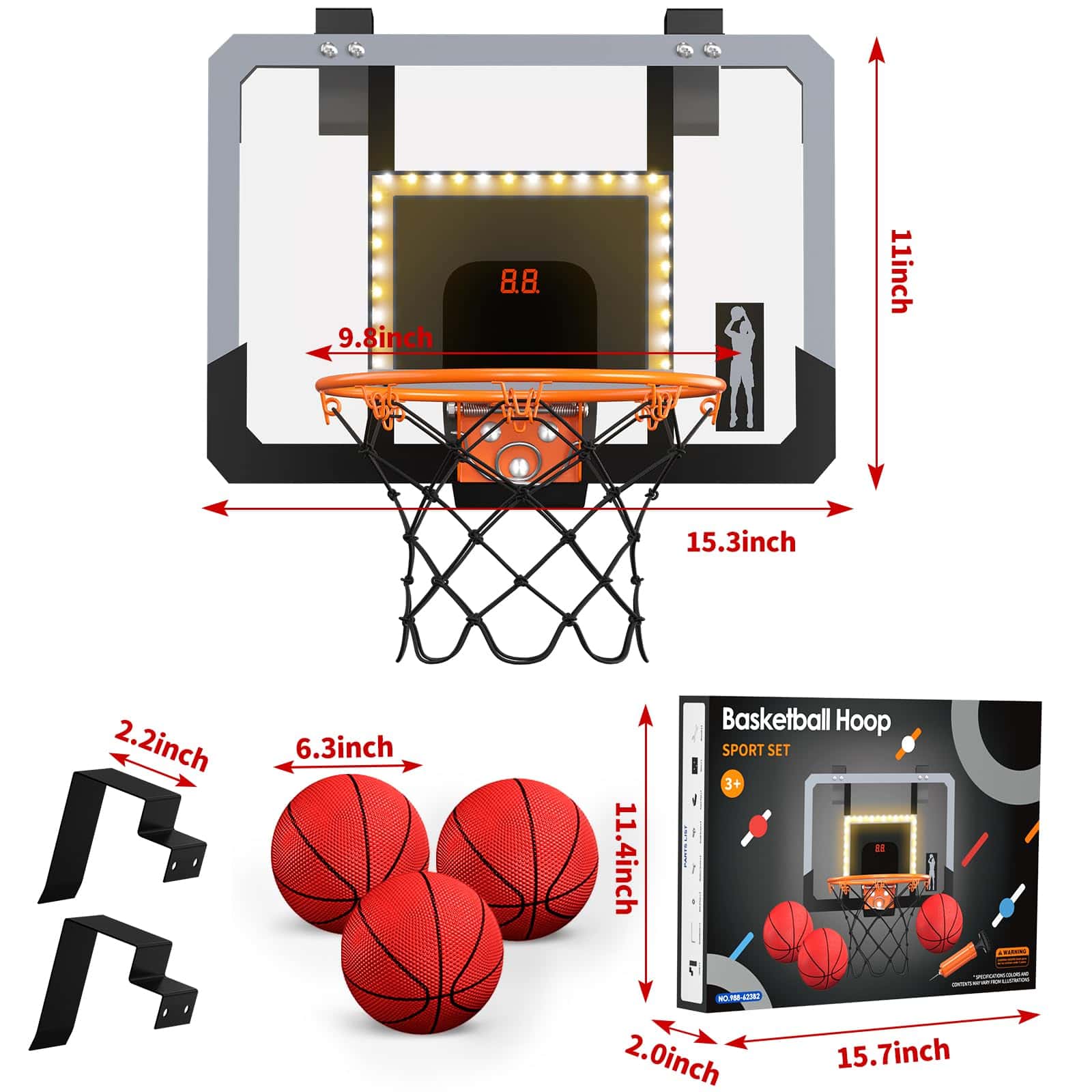 1. LED LIGHT & ELECTRONIC SCOREBOARD – ¡Anima tus anotaciones incluso en la oscuridad! Con 2 modos de juego: 60S de cuenta atrás 5S de cuenta atrás, añade más diversión y desarrolla el interés de los niños por el baloncesto. Con cada gol, animará y contará puntos para tus hijos. ¡Disfruta de la nueva forma de jugar después de que se ponga el sol!.