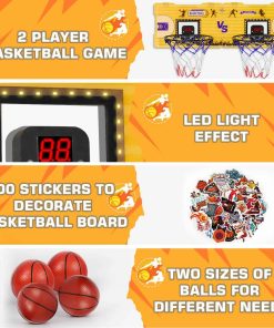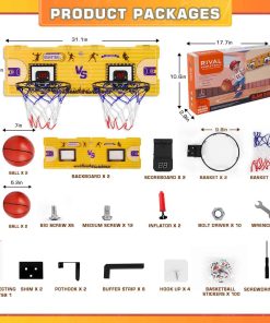 Set de Canasta de Baloncesto para Interiores de Alta Calidad que Incluye 4 pelotas de goma, 50 Pegatinas de Baloncesto, una bomba de aire y Equipo de instalación completo. Ofrece una diversión sin fin para ti y tu hijo, permite encestar con facilidad y fomenta la confianza de los niños en sus tiros.