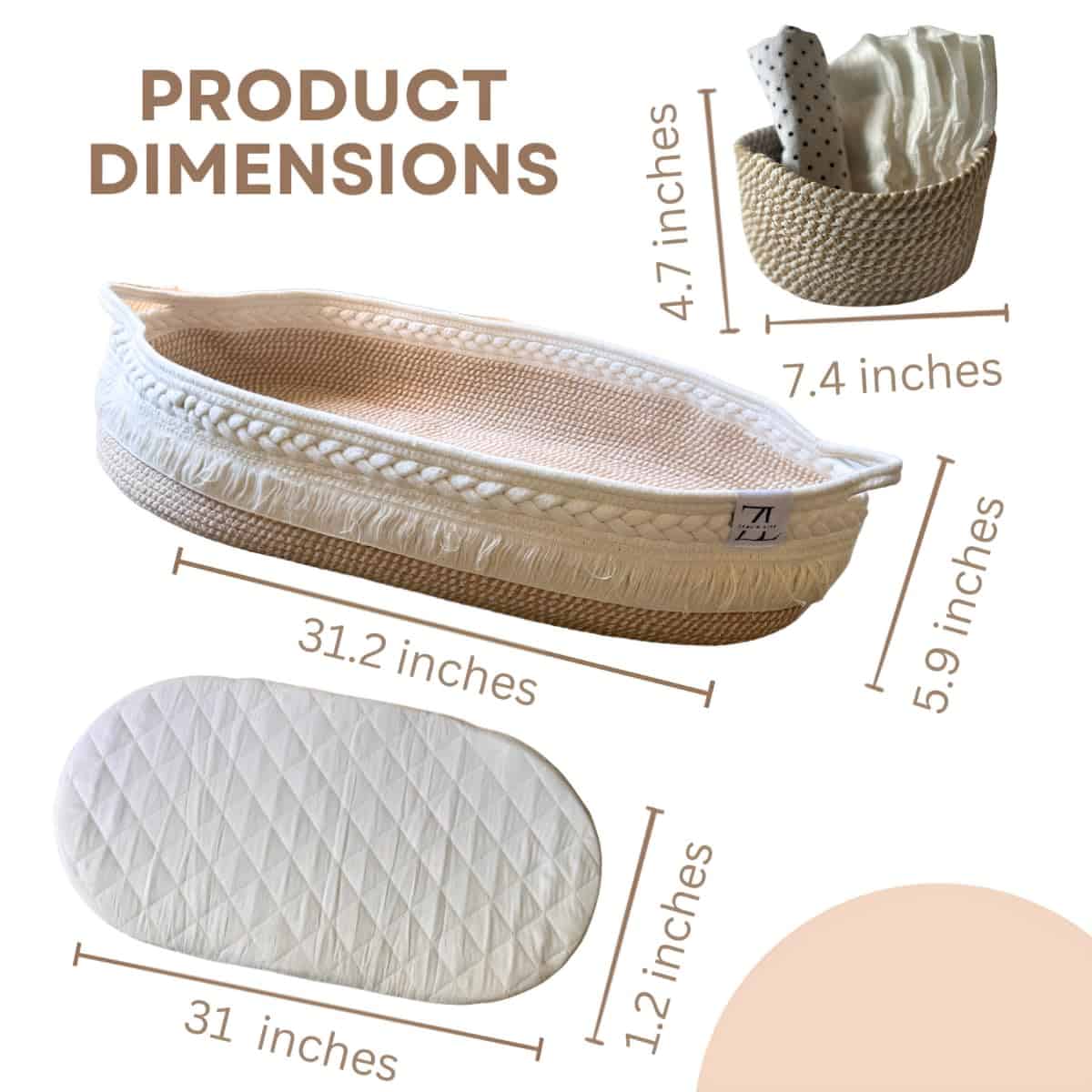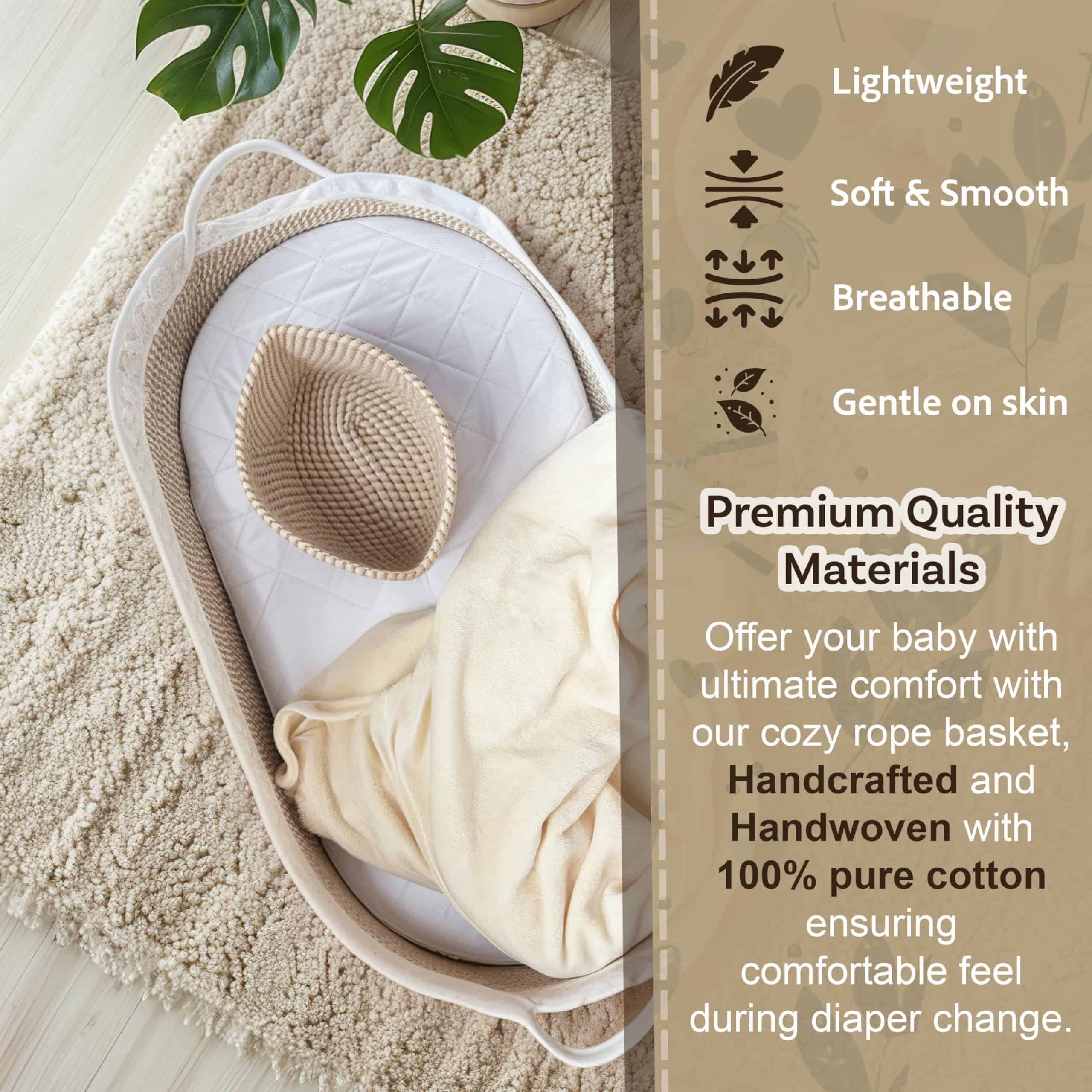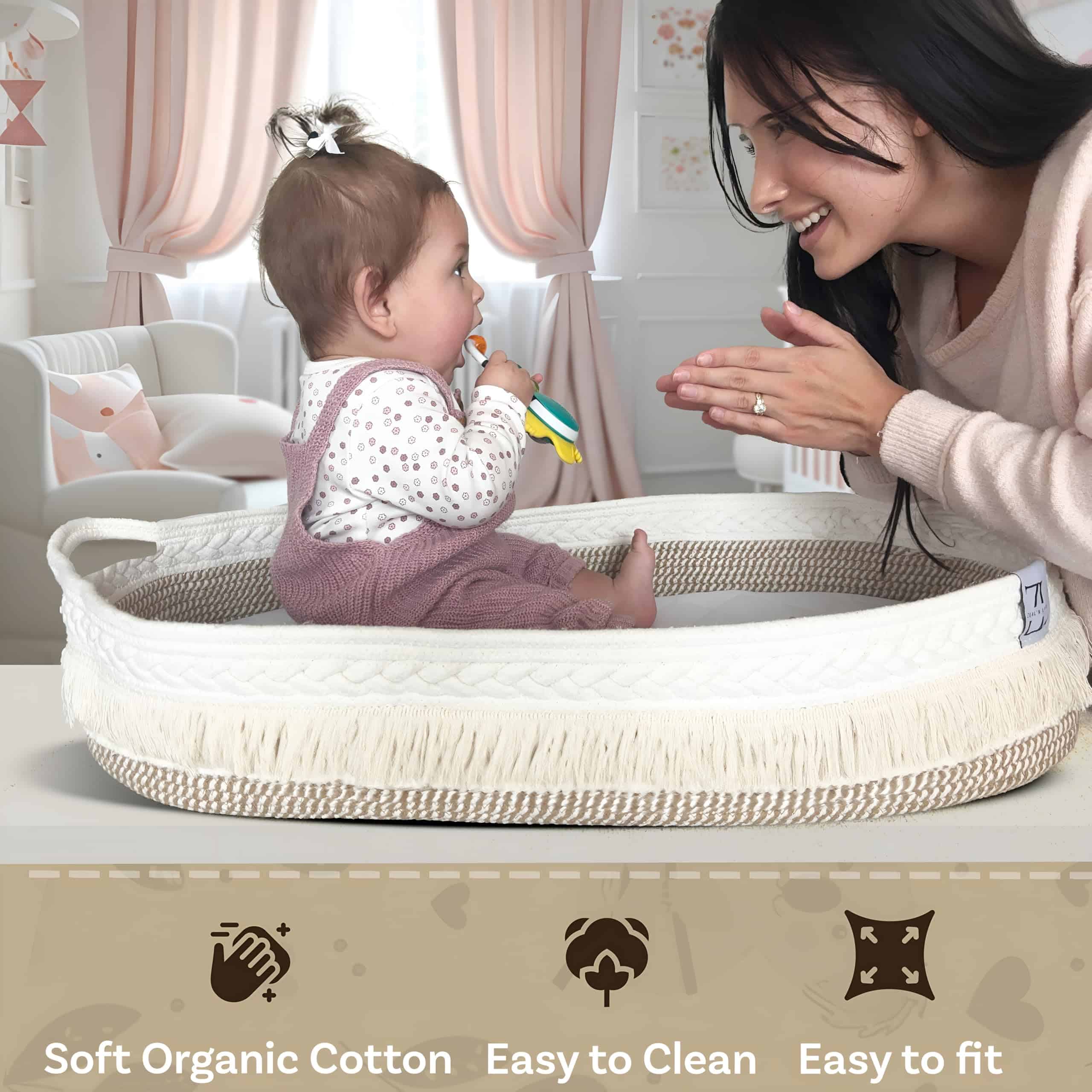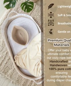 DISEÑO DE ALGAS MARINAS TEJIDAS A MANO Elaborada con algas marinas naturales respetuosas con el medio ambiente, esta canasta de cambio cuenta con un marco resistente y una estética moderna que realza cualquier vivero. Un hermoso reemplazo para las voluminosas mesas de cambio de plástico, almohadillas de espuma o cambiadores de silicona. Funciona como una alternativa chic para el soporte de cesta Moses y se adapta a interiores boho, minimalistas o escandinavos.
