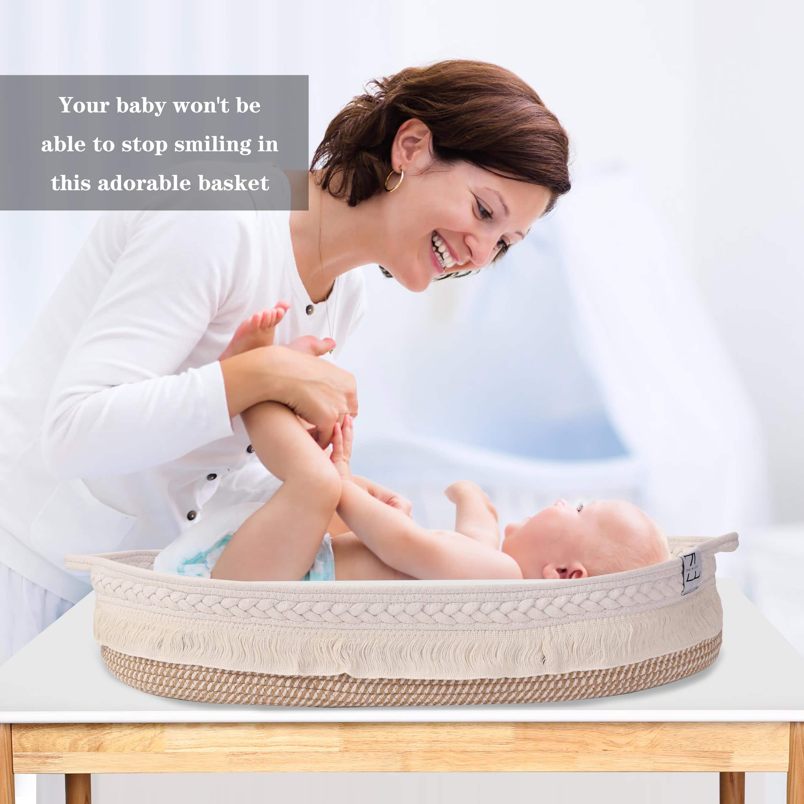 5. REGALO PARA NUEVOS PADRES: Canasta de cambio encantadora inspirada en el estilo bohemio para los nuevos papás y mamás de su vida. la construcción resistente impermeable de limpieza sencilla hace que sea un versátil regalo de baby shower o de revelación de género, donde la canasta de cambio para colchoneta de cambio puede ser un organizador de almacenamiento, una cesta de lavandería o una cesta de juguetes una vez que el bebé crece.