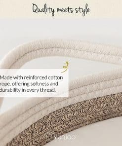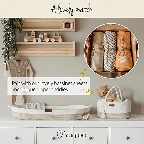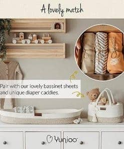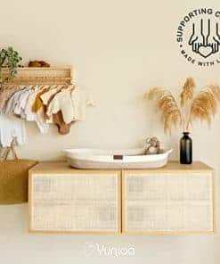 Este cambiador para comoda no solo es funcional, sino también decorativo. Su diseño premium está destinado a crear y completar una elegante decoración boho en cualquier habitación de bebé. Combínalo con el organizador de pañales y sábanas para moisés de Yunioo para lograr una armonía visual en la habitación de tu pequeño. Incluso cuando tu bebé ya no necesita un cambiador de pañales, esta cesta de cuerda de algodón puede seguir siendo un elemento decorativo o de almacenamiento versátil en tu hogar.