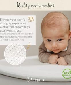 Para agradecerte por tu compra y contribución caritativa, la cesta de cambiador para bebé Yunioo XL viene con un colchón de pañales impermeable de alta calidad como regalo especial. Hecho con una cubierta ultrasuave fabricada con fibra de bambú ecológica, este colchón proporciona una capa de protección adicional para mantener a tu bebé seco y cómodo durante los cambios de pañales.