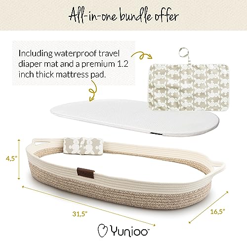 Cesta de Cambio Para Bebé Yunioo XL Reforzada con Almohadilla para Pañales Extra de Viaje, Cambiador de Bebé Plegable con Cubierta Repelente al Agua, Canasta de Bebé de Cuerda de Algodón, Tapa de Cambiador para Comoda (Blanco Beige)