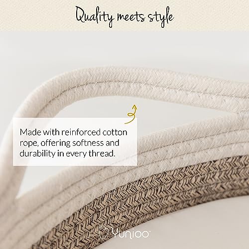 La cesta de cambio para bebé Yunioo XL ofrece un diseño exclusivo y de alta calidad para la comodidad y seguridad de tu bebé durante los cambios de pañales. Hecha con cuerda de algodón reforzada, conocida por su suavidad, flexibilidad y resistencia, esta canasta de cambiador para bebé brinda un lugar seguro, suave y duradero para cambiar a tu pequeño. Con dimensiones de 31.5 (L) x 16.5 (W) x 4.5 (H), esta cesta proporciona un amplio espacio para un cambiador de pañales mientras se adapta perfectamente a casi cualquier mesa de cambio de bebé en guardería.