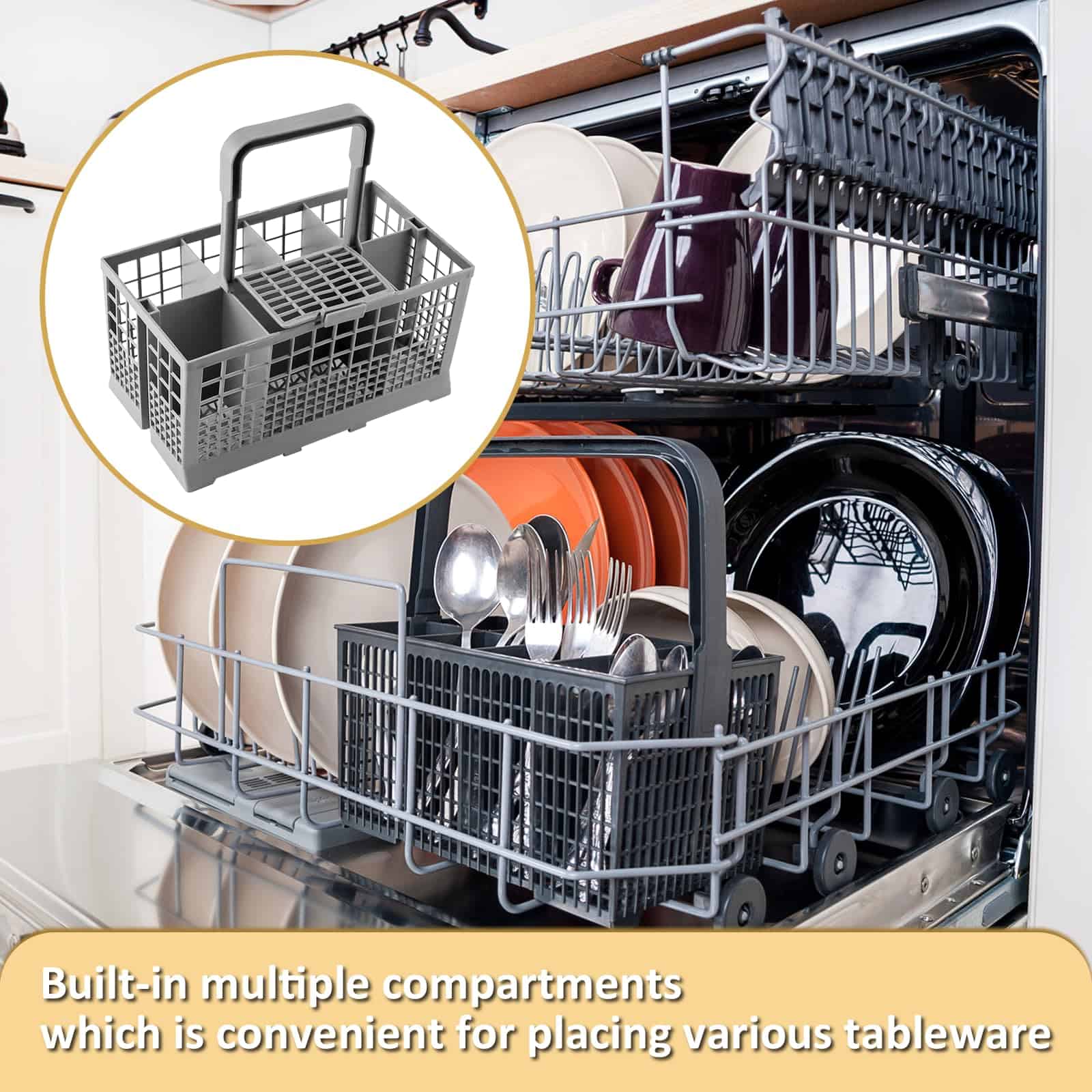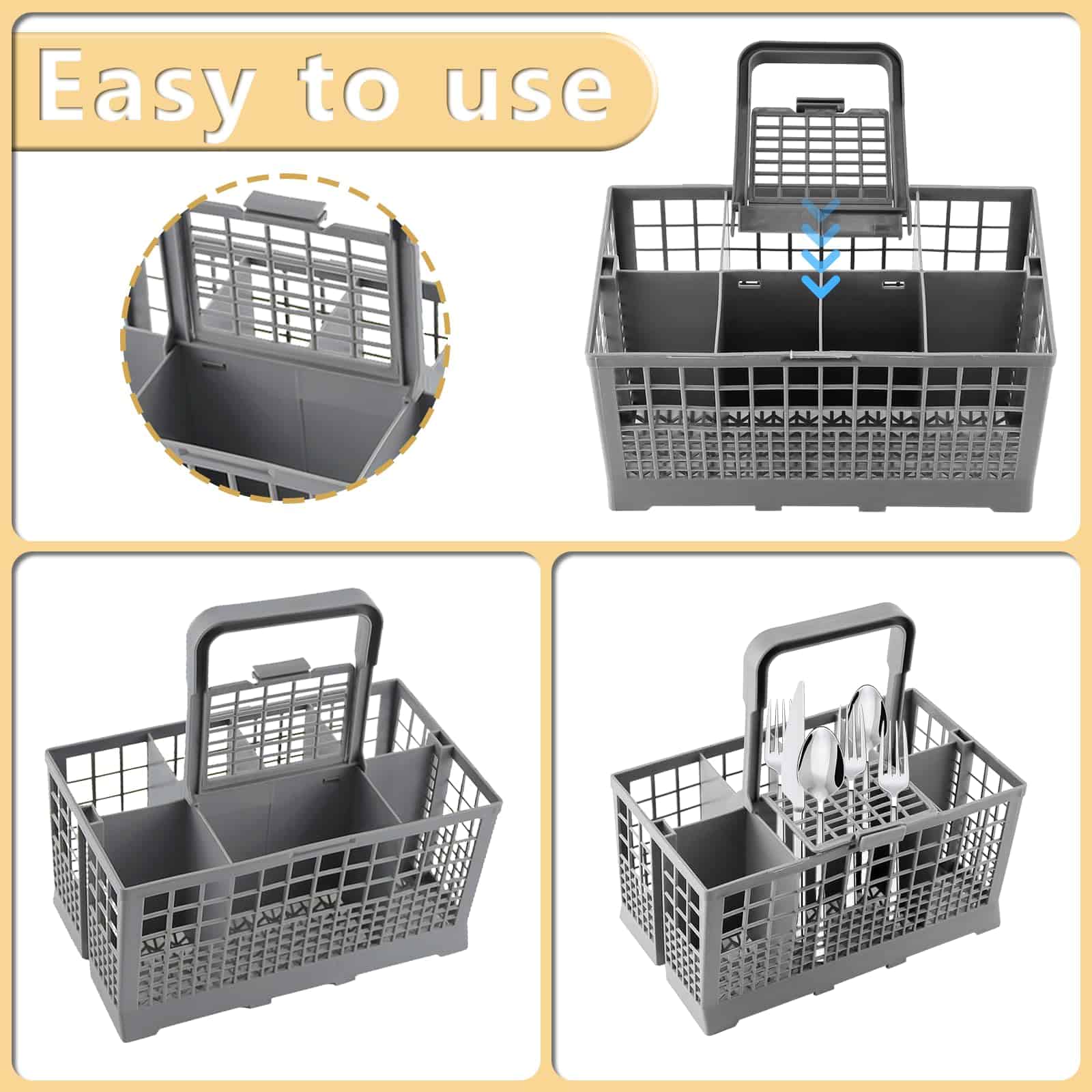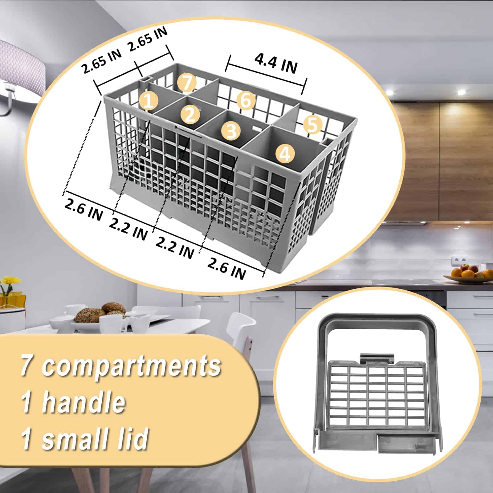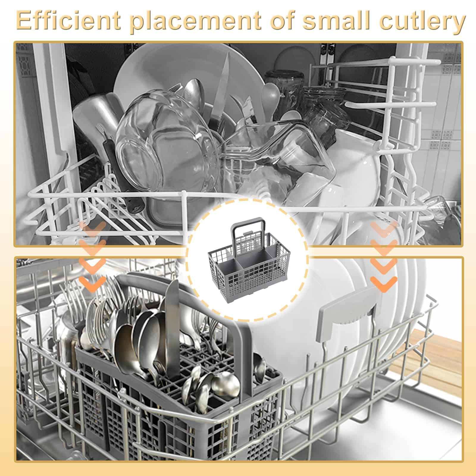 Canasta de Cubiertos para Lavavajillas Universal Cenipar. dónde usar: La Canasta de Cubiertos para Lavavajillas Universal es adecuada para la mayoría de los modelos de lavavajillas. Qué es: Esta canasta de cubiertos para lavavajillas tiene 7 compartimentos, 1 asa y 1 tapa pequeña, la pequeña es solo para un compartimento. Este producto tiene múltiples compartimentos integrados, que son convenientes para colocar varios utensilios. Dimensiones del producto: 9.5″ x 5.4″x 4.8″ Cómo usar: Encienda el lavavajillas y coloque la canasta en el lugar correcto. Coloque sus cucharas, tenedores, cuchillos y otros utensilios en las bandejas. Por qué elegirnos: Nuestro diseño perfecto, presupuesto transparente, gestión eficiente, artesanía de alta calidad, establecer diligentemente un «espacio ideal de habitación saludable» para usted, será la mejor razón para que nos elija. Tenga en cuenta: Por favor, infórmenos a tiempo cuando necesite ayuda, y haremos todo lo posible para solucionarlo por usted.