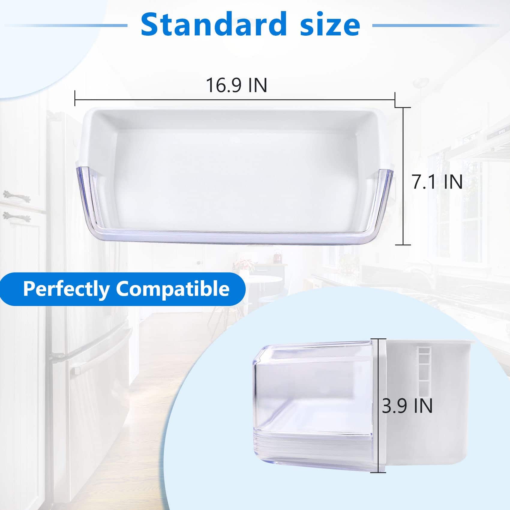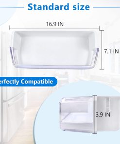 1. Número de parte: La canasta de estante de puerta DA97-06177C reemplaza a DA97-06177C, DA97-06177B, DA63-04205, AP4457757, 2050273, PS4173985, EAP4173985. Solo aplicable para este modelo, por favor, confirme antes de comprar, el tamaño del estante de puerta del refrigerador DA97-06177C es 16.9″L 7.1″W 3.9″H.