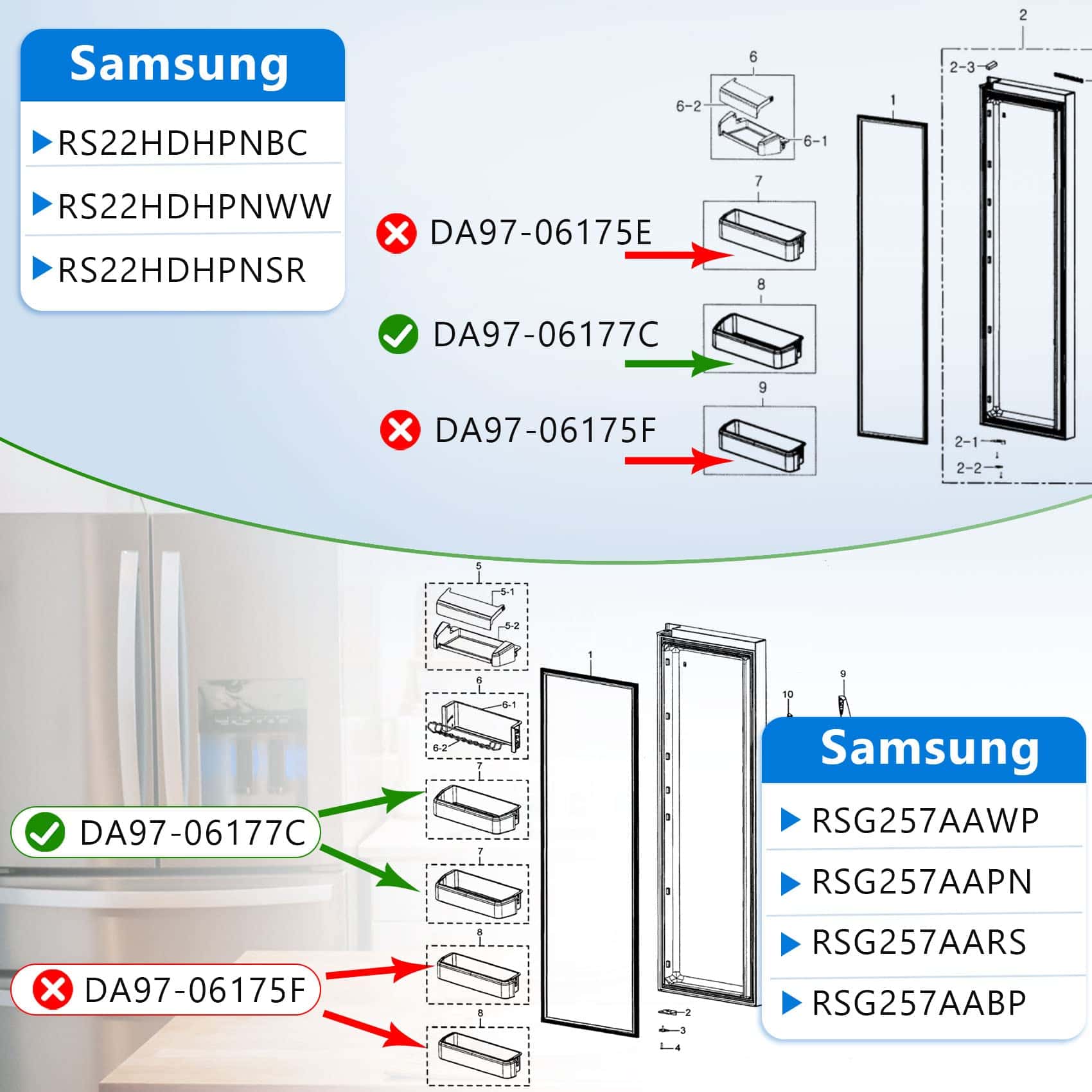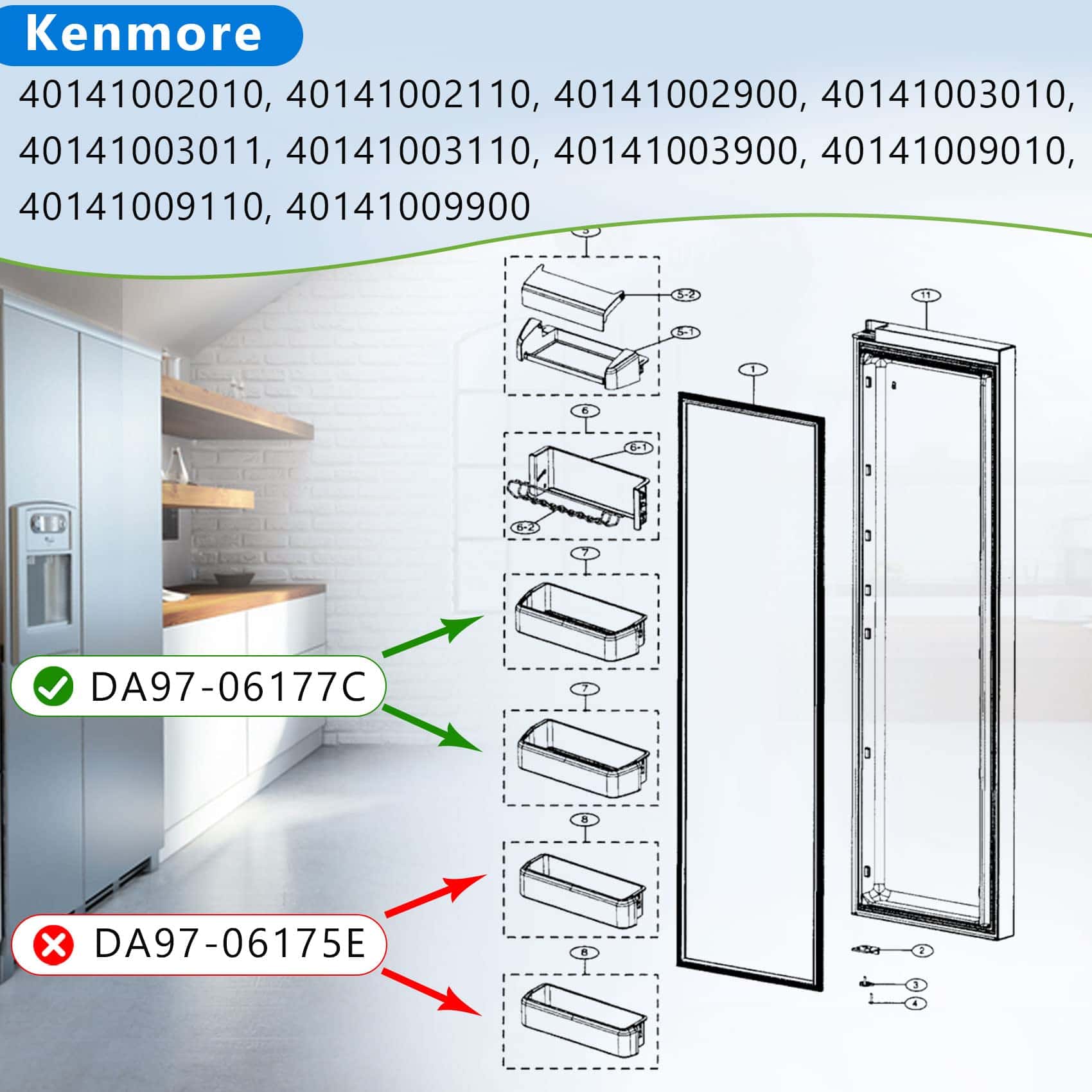 3. Modelo aplicable: La canasta de estante de puerta DA97-06177C es compatible con samsung RS22HDHPNBC, RS22HDHPNWW, RS22HDHPNSR, RSG257AAWP, RSG257AAPN, RSG257AARS, RSG257AABP, kenmore : 40141003010, 40141002900, 40141003011, 40141009900, 40141002010, 40141002110, 40141003110, 40141003900, 40141009010, 40141009110.