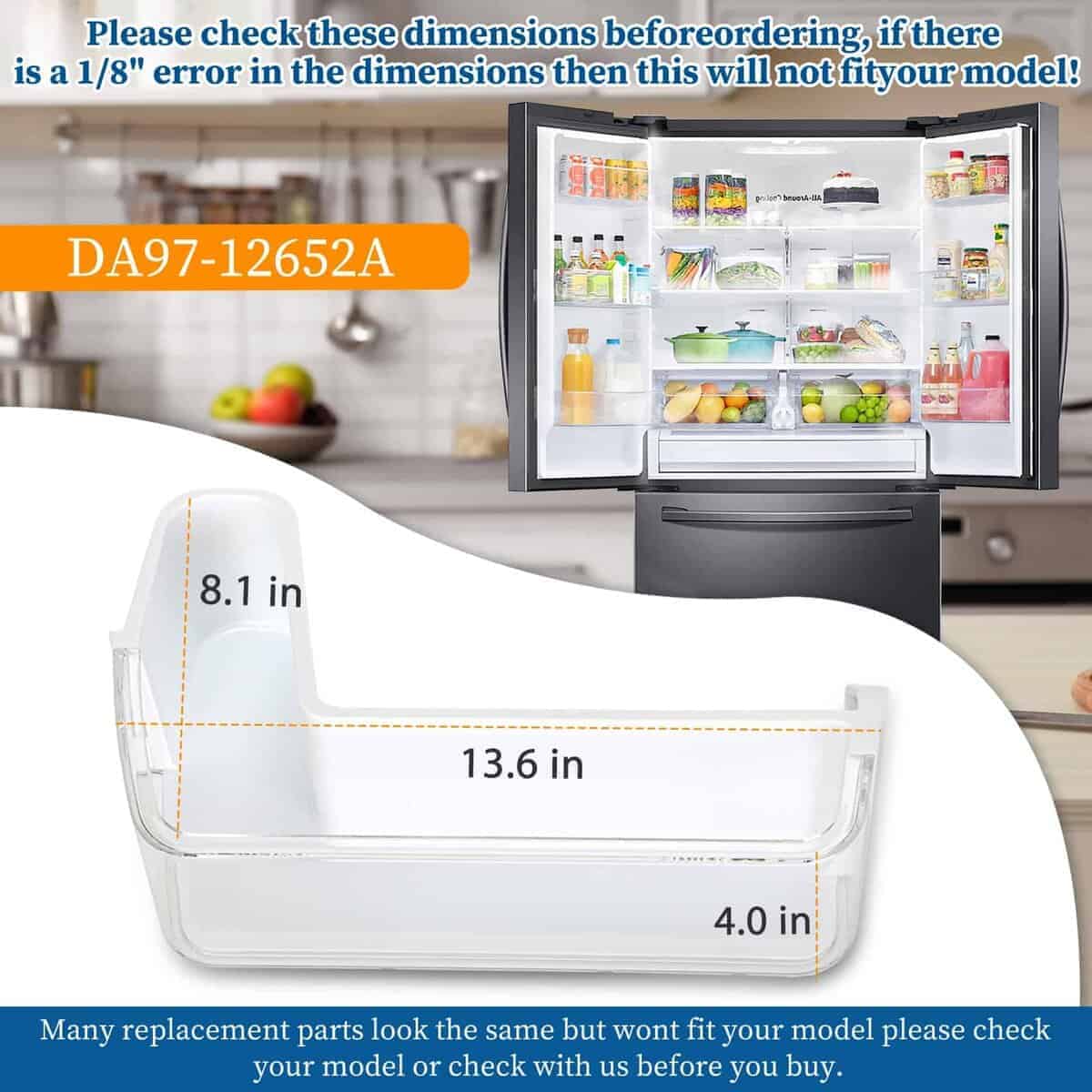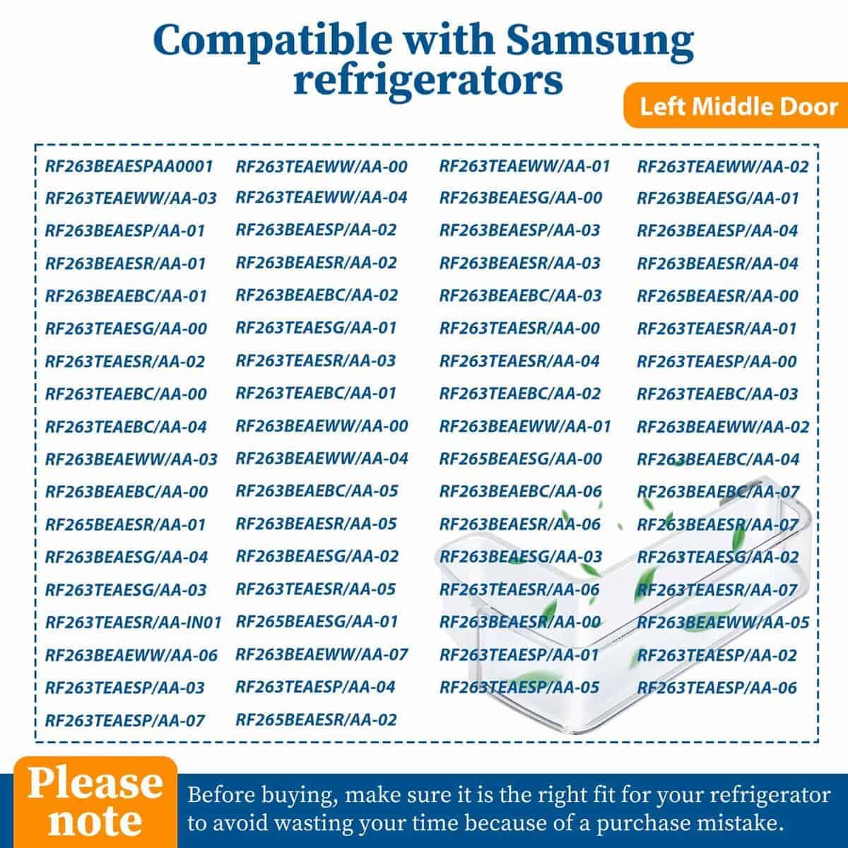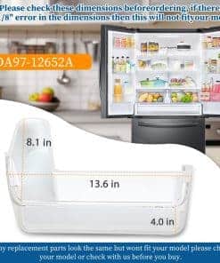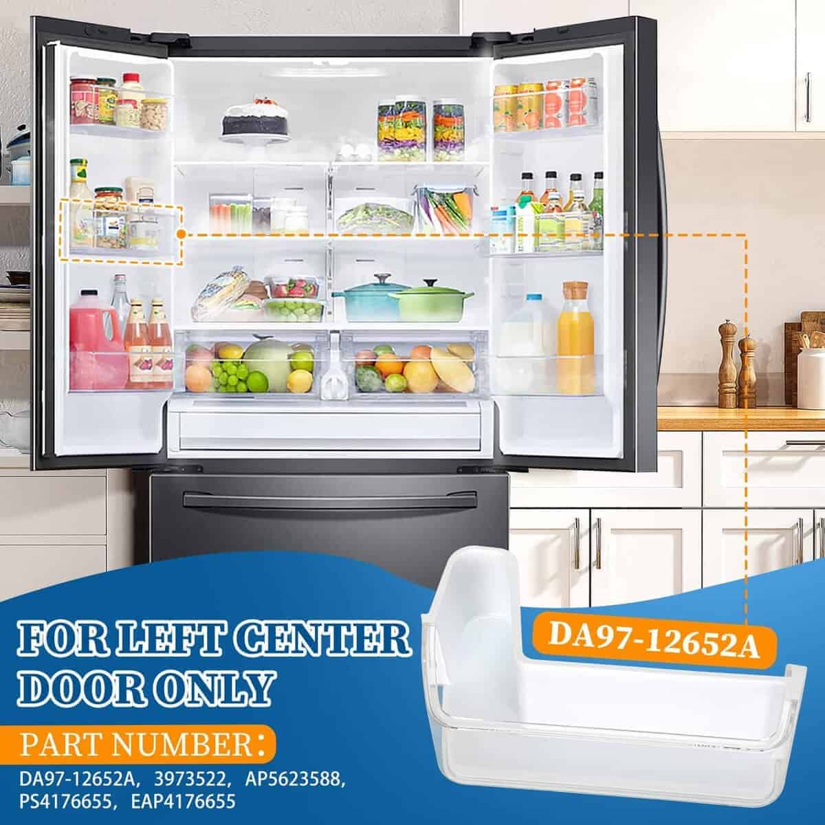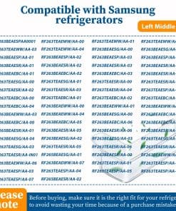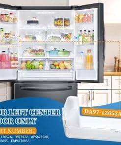 1. Números de Parte: Canasta de estante de puerta lateral izquierda para cajón de refrigerador Samsung compatible con el refrigerador Samsung DA97-12652A, AP5623588, 3973522, PS4176655, EAP4176655. Nota: esta bandeja de estante de puerta solo es compatible con la puerta lateral izquierda del refrigerador en el medio. No se ajustará en la ranura inferior, ranura superior y puerta derecha del refrigerador.