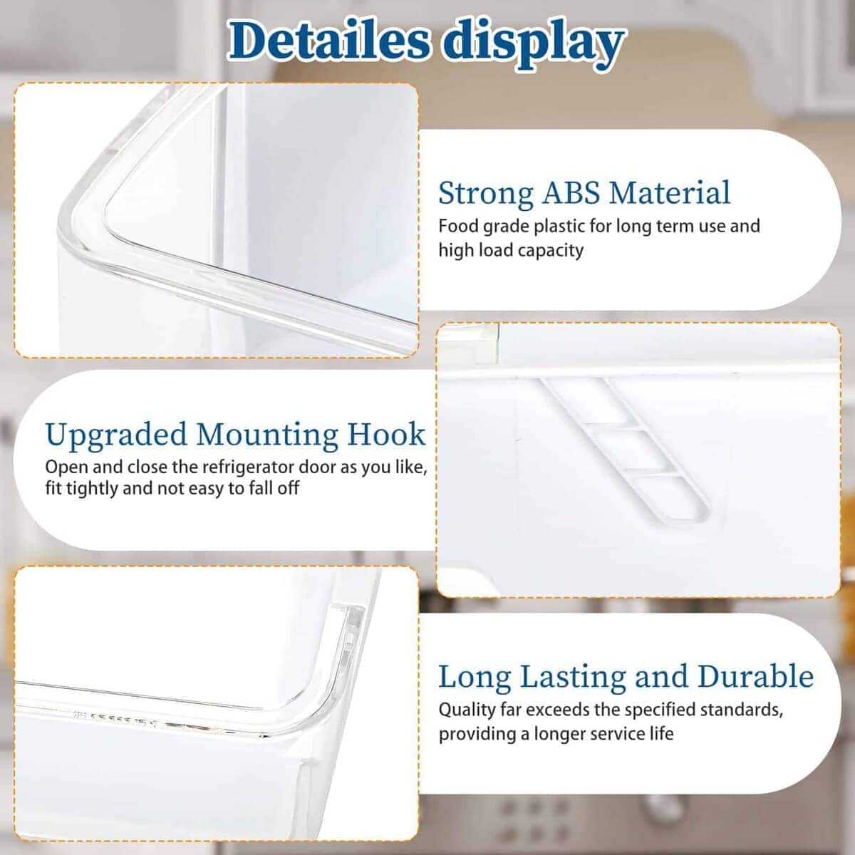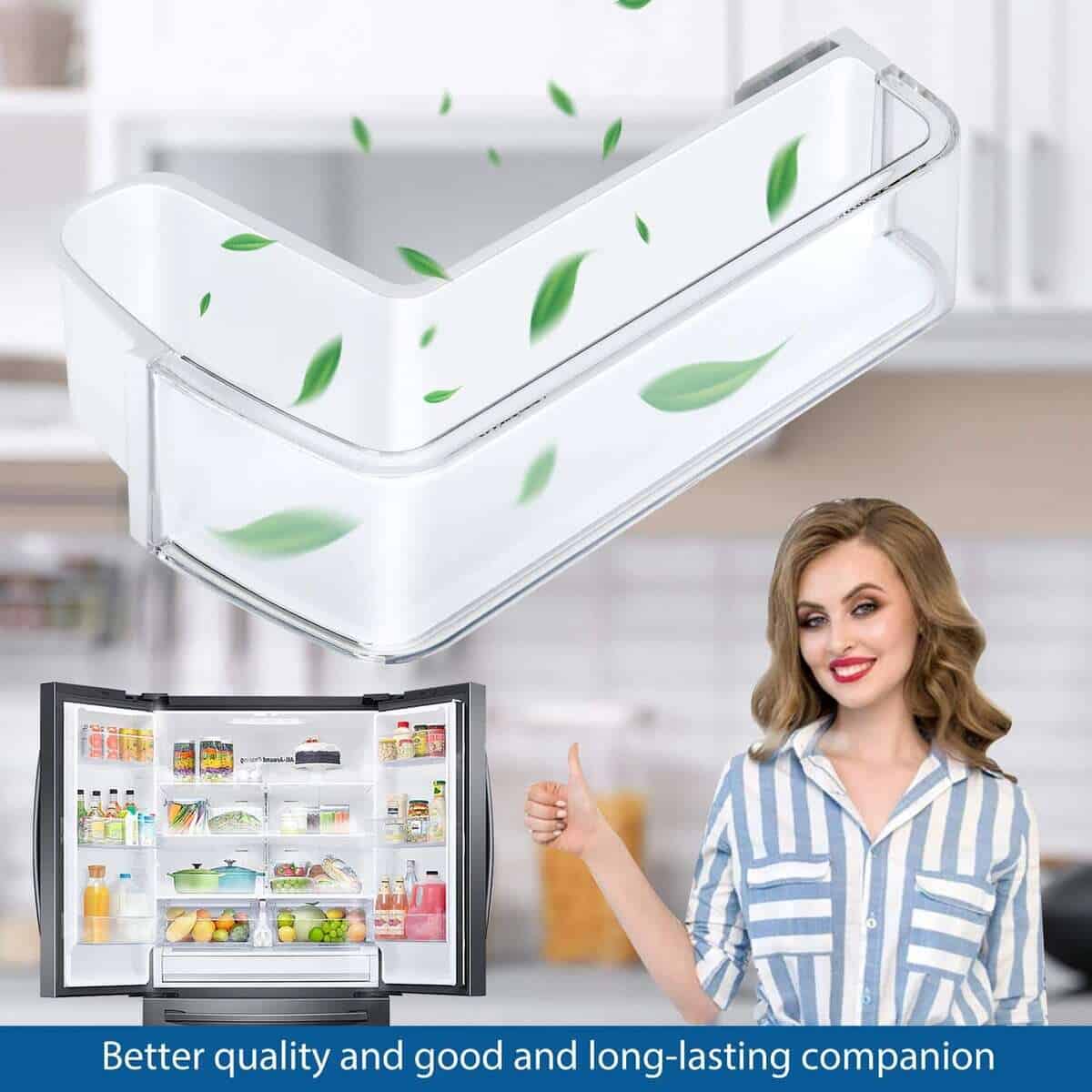 3. Instalación Fácil: La instalación de DA97-12652A no requiere la ayuda de herramientas, y su refrigerador se renueva en segundos. Simplemente deslice el bunker en el estante sobre la posición deseada de la puerta y presione hacia abajo hasta que encaje en su lugar. También viene con 20 bolsas de almacenamiento, que proporcionan comodidad para que use el refrigerador y aumentan la felicidad de la vida.