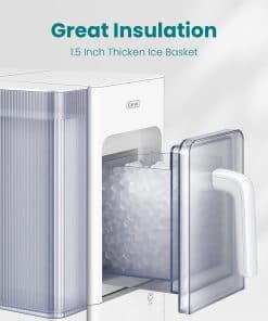 La canasta de hielo Adella está diseñada para ser removible, lo que la hace conveniente para sacar y servir hielo. Con una capacidad de 2.5 lbs, esta canasta de hielo puede satisfacer la demanda de hielo para 4-6 personas, asegurando que usted y su familia o amigos disfruten de deliciosas bebidas con hielo al mismo tiempo. La parte inferior de la canasta de hielo está equipada con una válvula a prueba de fugas que le permite llevarla a cualquier lugar sin que gotee. Con un grosor de tres capas (1.5 pulgadas de espesor), la canasta de hielo tiene una gran capacidad de aislamiento, con un 60% de retención de hielo durante 6 horas a una temperatura ambiente de 80 grados. La canasta de hielo Adella está hecha de material de grado alimenticio, seguro para los usuarios.