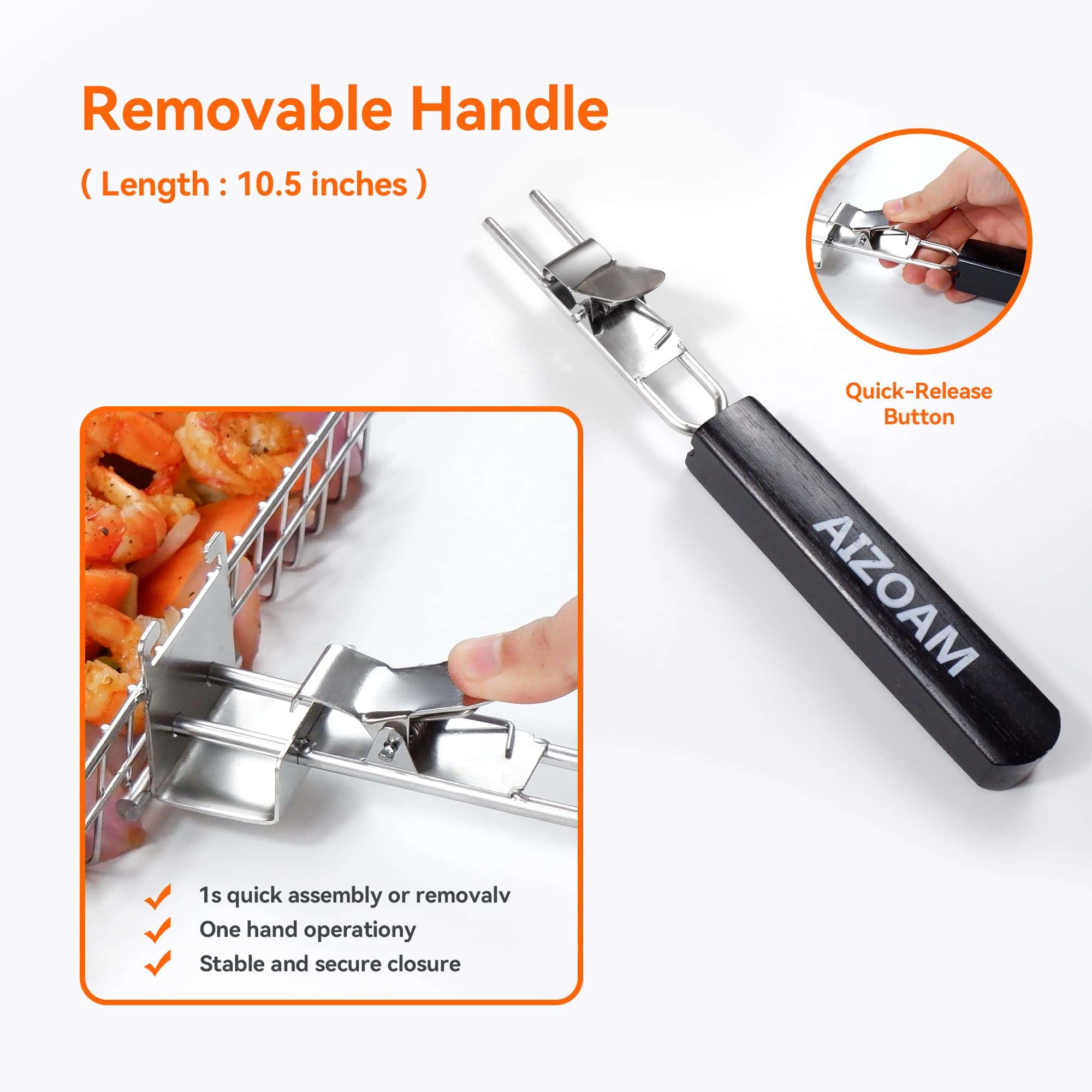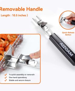 La canasta de parrilla AIZOAM presenta un mango resistente al calor desmontable, fácil de acceder a la canasta de parrilla. Cuando esté asando a altas temperaturas, retire el mango y coloque la canasta en la parrilla para protegerlo del calor de la parrilla. El mango se puede quitar y colocar dentro de la canasta de parrilla para pescado, que luego se puede almacenar en la bolsa de almacenamiento para un fácil almacenamiento y transporte. Perfecto para barbacoas familiares o reuniones gourmet al aire libre. Las canastas de parrilla para parrilla miden 12,6 x 9,45 x 2 pulgadas, perfectas para 2-4 personas. El interior espacioso y profundo de la rejilla de parrilla para pescado está diseñado para acomodar una variedad de alimentos, desde peces enteros y filetes hasta filetes gruesos de pescado y verduras. Ya sea que esté asando carne o verduras, estas canastas de parrilla proporcionan un amplio espacio para una experiencia de barbacoa satisfactoria. La canasta de verduras para parrilla presenta un cierre de pestillo seguro para una operación fácil y segura. Simplemente presione ambos lados hacia adentro para abrir la canasta y sacar su comida cocida. Para cerrar, presione nuevamente y suelte para bloquear de forma segura la canasta de pescado para asar, asegúrese de que la comida no se caiga al voltearla. La pequeña malla evita que los artículos más pequeños se caigan. El diseño de bloqueo de seguridad de la canasta de parrilla para pescado aumenta la comodidad y la seguridad. Hechas de acero inoxidable de grado alimenticio, estas canastas de verduras para parrilla están diseñadas para durabilidad y uso duradero, seguras de usar y no se deformarán ni retorcerán. Las canastas de parrilla para parrilla vegetales son ligeras, fáciles de usar, resistentes a la oxidación y aptas para lavavajillas, asegurando que puedan resistir numerosas temporadas de asado. Los accesorios para asar a la parrilla AIZOAM incluyen una canasta de parrilla, pincel para asar, guantes para asar y brochetas de barbacoa. Las canastas de barbacoa para parrillas exteriores y otros accesorios para parrillas son excelentes accesorios de campamento para asar al aire libre. Los accesorios para barbacoa también son un excelente regalo para el cumpleaños de un esposo, un hombre y el Día del Padre.