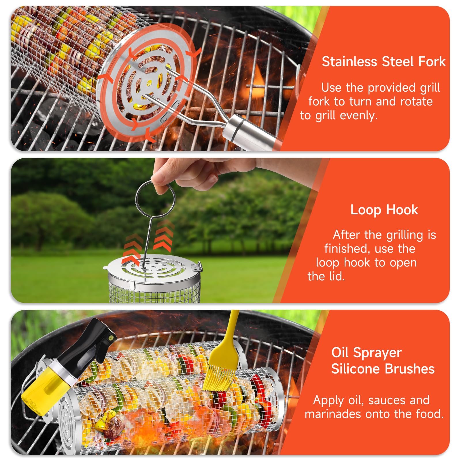 Accesorio de parrilla definitivo para cualquier entusiasta de la BBQ! Nuestra canasta de parrilla enrollable está hecha de acero inoxidable de alta calidad y grado alimenticio que garantiza una parrilla segura y una limpieza fácil. Con su diseño innovador, puede cargar fácilmente la cesta con sus carnes, verduras y más favoritos, sin preocuparse de que caigan entre las rejillas. Diseño de malla – Sin caída de comida Tapa firme Calentamiento uniforme de 360 Acero inoxidable 304 – Seguro, duradero, reutilizable Malla de canasta de 0,8MM Gran capacidad Prepara la comida con anticipación y guárdala Lavaplatos y lavado a mano disponible Multiusos – Para verduras, carnes, mariscos. Para picnics, acampadas, tailgating, fiestas. Contenido del paquete: 1 x Canasta de parrilla Tamaño: 3,54 3,54 11,8 pulgadas 1 x Canasta de parrilla Tamaño: 3,54 3,54 12,2 pulgadas 2 x Ganchos 2 x Tenedores pequeños 4 x Pinceles de silicona 1 x Pulverizador de aceite 1 x Tenedor de acero inoxidable¡Eleva tu juego de parrilla con nuestra canasta enrollable – disfruta de una comida perfecta cada vez!