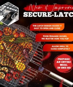 1. MAYOR CAPACIDAD: ¡Cocina una comida completa de una vez! Esta Canasta de Parrilla Jumbo XL es perfecta para pescado, alitas de pollo, muslos de pollo e incluso varias verduras para asar a la parrilla. ¡Tantas opciones para tu experiencia de asar a la parrilla!