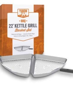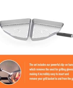 1. LLEVA TU JUEGO DE BARBACOA AL SIGUIENTE NIVEL: ¿Buscas herramientas y accesorios para cocinar al aire libre? Con este increíble juego de accesorios de barbacoa de 3 piezas que incluye un mango de clip con 2 canastas de parrilla de acero inoxidable perforadas para parrillas de 22″ – ¡cocina y sirve diferentes tipos de alimentos al mismo tiempo!.