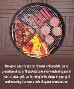 4. JUEGO DE 3 EN 1 PARA ASAR Y SERVIR PERFECTO: Asa vegetales y mariscos y otras delicias en estas canastas de parrilla separadas diseñadas específicamente para parrillas circulares, estas parrillas en hervor – ahorra cada pulgada de espacio conforme a la forma de tu parrilla en hervor.