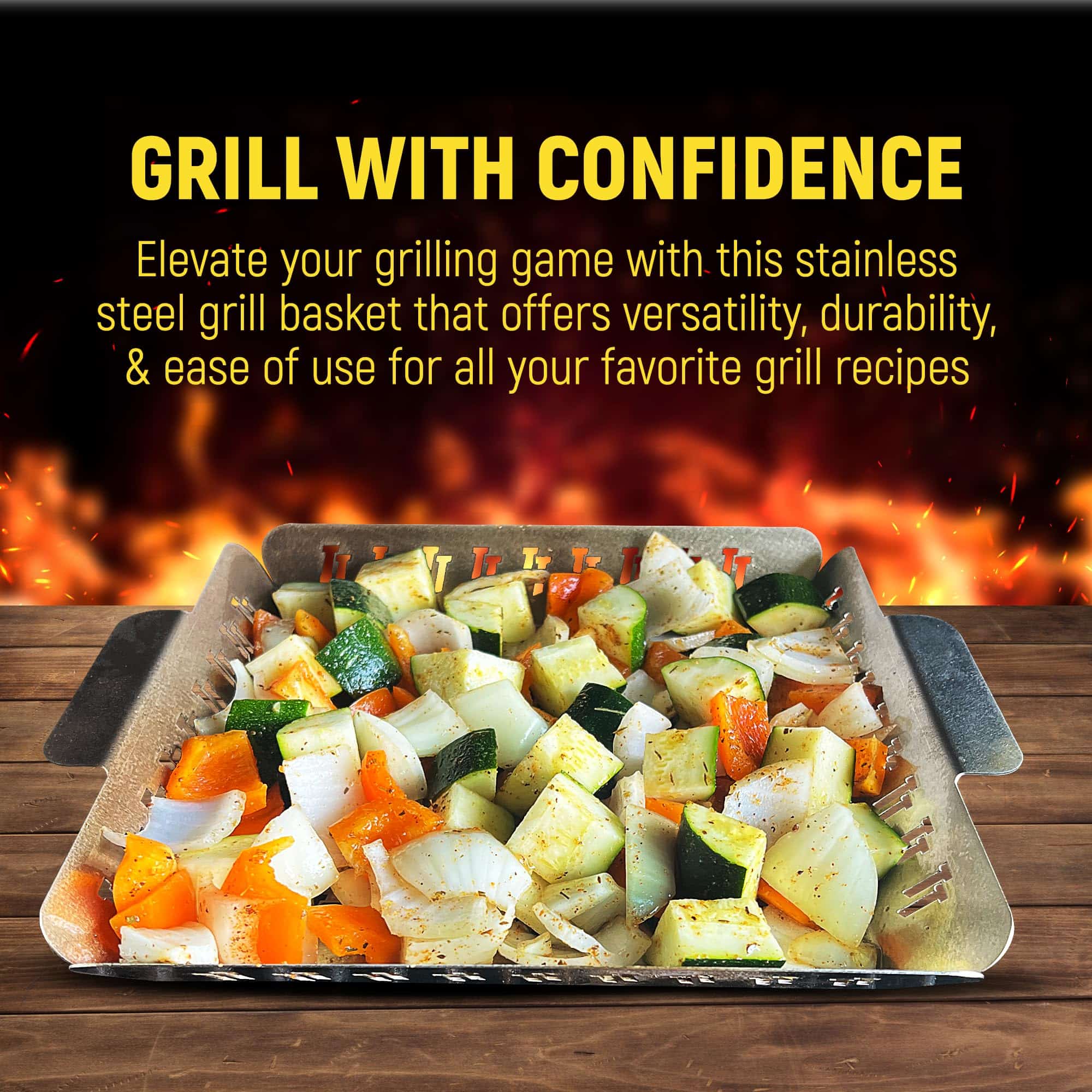 4. ASAR CON CONFIANZA I Eleva tu juego de asar con esta canasta de parrilla de acero inoxidable que ofrece versatilidad, durabilidad y facilidad de uso para todas tus recetas favoritas de barbacoa.