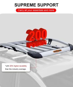 1. SOPORTA HASTA 200 LIBRAS DE CAPACIDAD DE PESO: Nuestra canasta de techo asegura que puedas llevar todos tus elementos esenciales y más, con un 33% más de durabilidad que el promedio de la industria. Hecha de aluminio ligero pero resistente, combina fuerza con portabilidad, lo que la hace fácil de manejar y transportar.