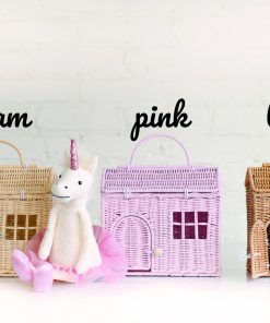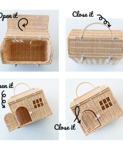 A tu pequeña le encantará jugar con esta hermosa canasta en forma de casa. Ella puede llevarla como un bolso a donde quiera que vaya y llevar consigo algunas de sus muñecas en miniatura favoritas o ratones para jugar. Deja que su imaginación vuele mientras puede abrir y cerrar la puerta o acceder al centro del bolso a través de la tapa. Esto también es un accesorio adorable para su dormitorio. Puede funcionar como una pequeña canasta de almacenamiento y un juguete de hacer creer. Es el toque perfecto para una guardería de bosque o la habitación de una niña boho.