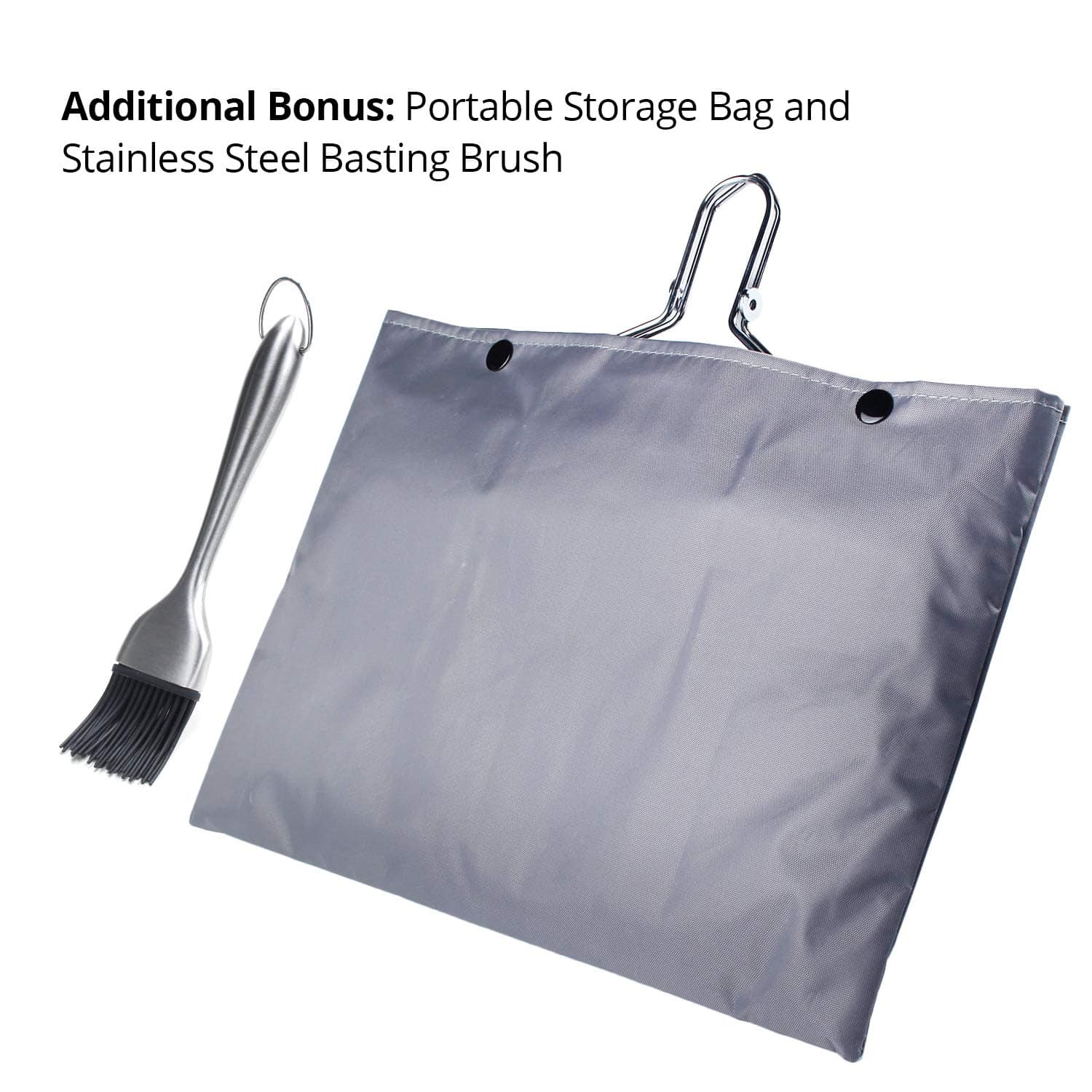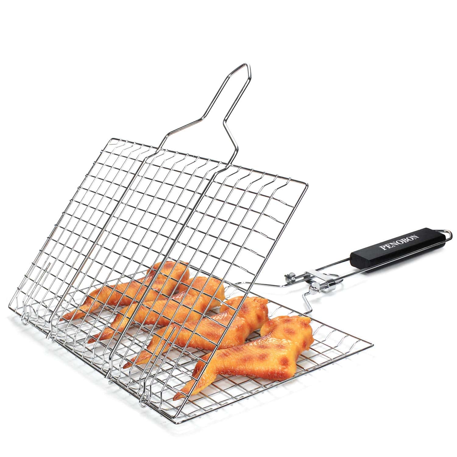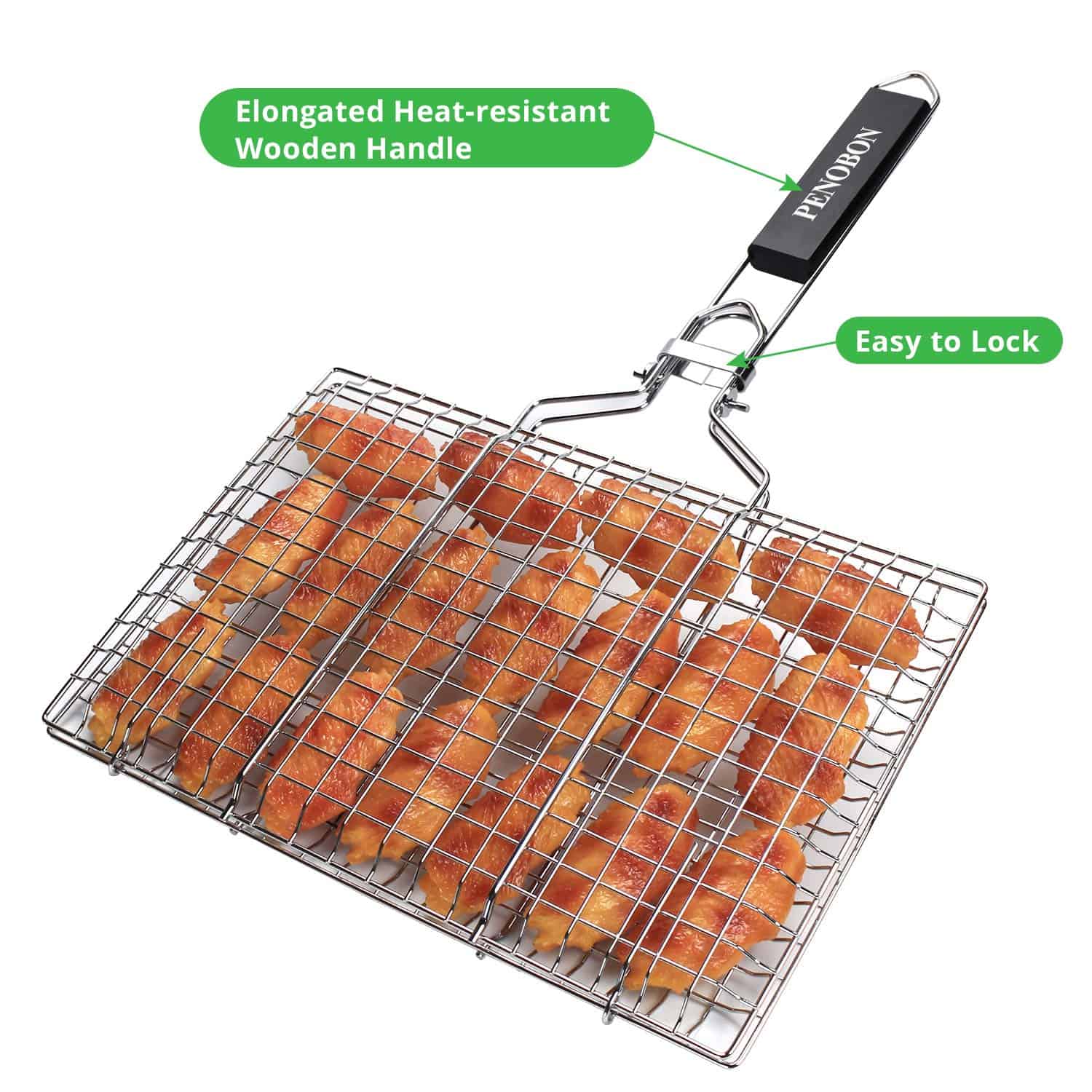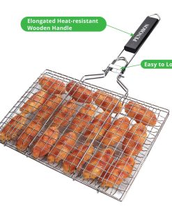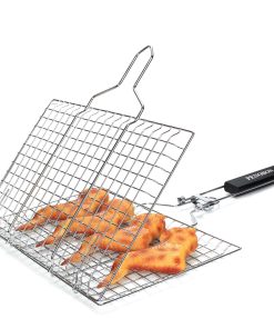 Mejora tu experiencia de parrilla con nuestra premium Canasta para Asar Pescado, elaborada con acero inoxidable 430 de grado alimenticio, duradero y resistente a la oxidación. Esta versátil canasta rectangular (12.6″ de ancho x 19.69″ de largo x 0.79″ de alto) puede acomodar una variedad de alimentos, desde pescado y camarones hasta vegetales y bistec, lo que la convierte en perfecta para 2-3 personas. La canasta bloqueable garantiza un volteo fácil y evita que los trozos pequeños se caigan a través de sus espacios entre rejillas perfectamente dimensionados, promoviendo una distribución uniforme del calor. Plegable y portátil, viene con una bolsa de almacenamiento para un transporte conveniente y un mango desmontable con un cepillo para adobar para mayor comodidad. Apto para lavavajillas para una limpieza fácil, esta canasta para parrilla es imprescindible para cualquier entusiasta de las BBQ.