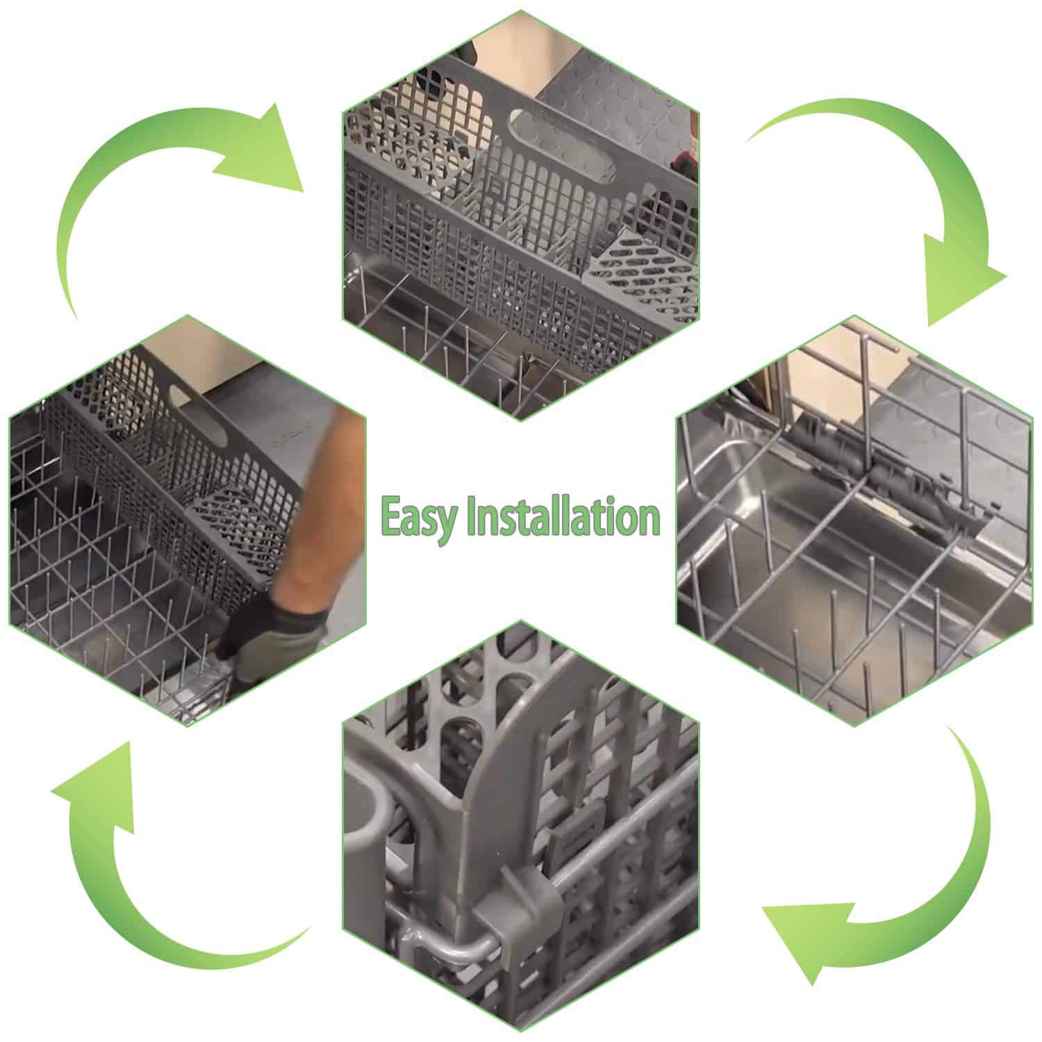 2. TAMAÑO PERFECTO PARA INSTALAR MÁS FÁCIL: Canasta de Utensilios de Lavavajillas 8531233/WP8562043 19-1/4″ de Ancho x 9″ de Alto x 3-3/8″ de Profundidad, de color gris adecuado para la mayoría de los modelos de lavavajillas. Puedes colocar herramientas de cocina, como batidores, espátulas, etc. No se necesitan herramientas, Fácil de desmontar y limpiar. Solución de posible reparación para problema: 1. La vieja canasta se estaba desmoronando.