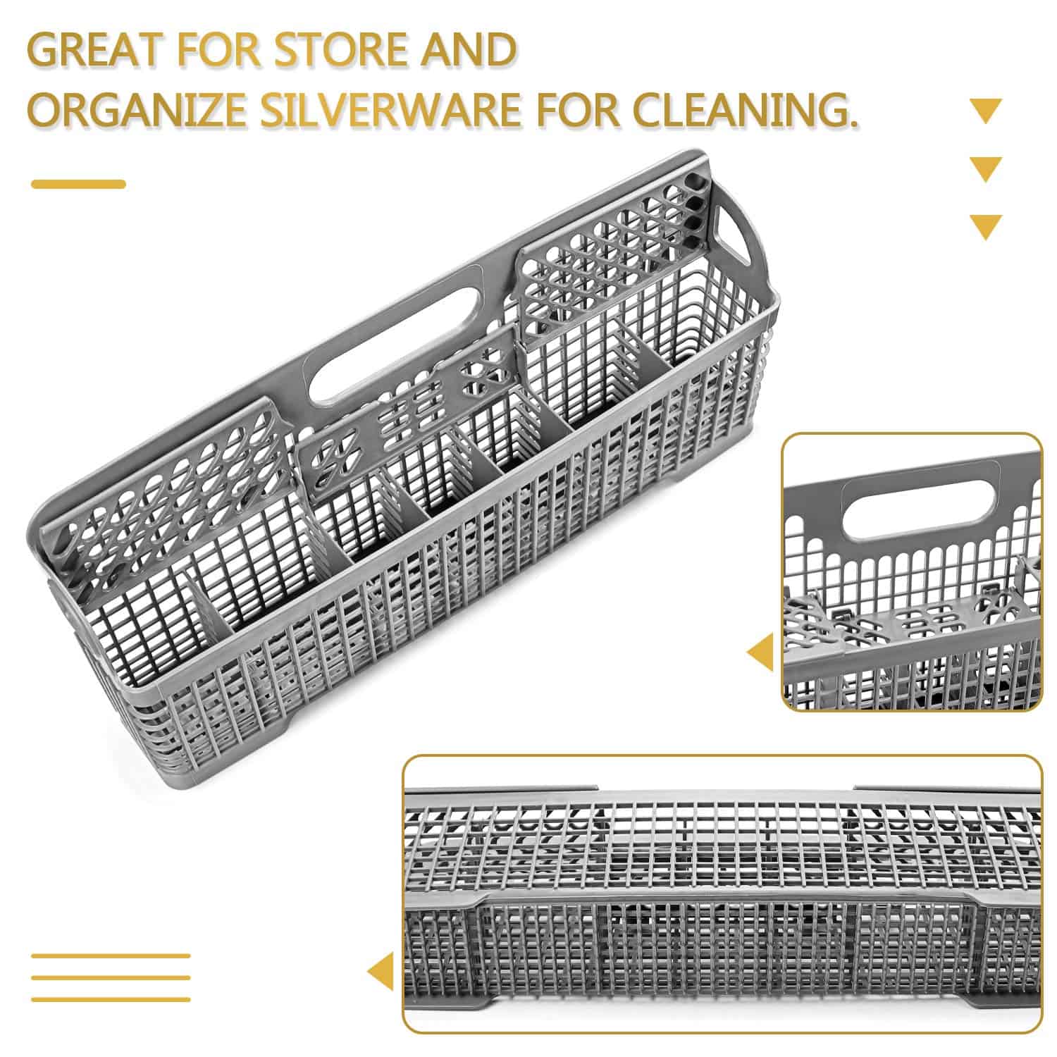 1. CALIDAD SUPERIOR Y DURADERA: Canasta para Cubiertos de Lavavajillas 8531233 WP8562043. Hay siete espacios, compuestos por cuatro partes grandes y tres pequeñas, lo que hace que el uso del espacio de la canasta sea más razonable. Las tapas se pueden abrir a 90 grados, y el diseño de la tapa evita que los objetos pequeños se caigan durante el proceso de enjuague. La canasta para cubiertos descansa en el lavavajillas inferior y sostiene utensilios pequeños, como tenedores y cuchillos, durante el ciclo de lavado de platos con alta eficiencia.