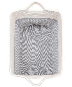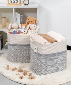 La Cesta de Almacenamiento Laughbird es perfecta para mantener ordenados tus mantas, juguetes y otros artículos en tu sala de estar o armario. Confeccionada con cuerda de algodón resistente, esta cesta tejida cuenta con asas para facilitar su transporte. ¡Hazte con la tuya y mantén tu hogar organizado!