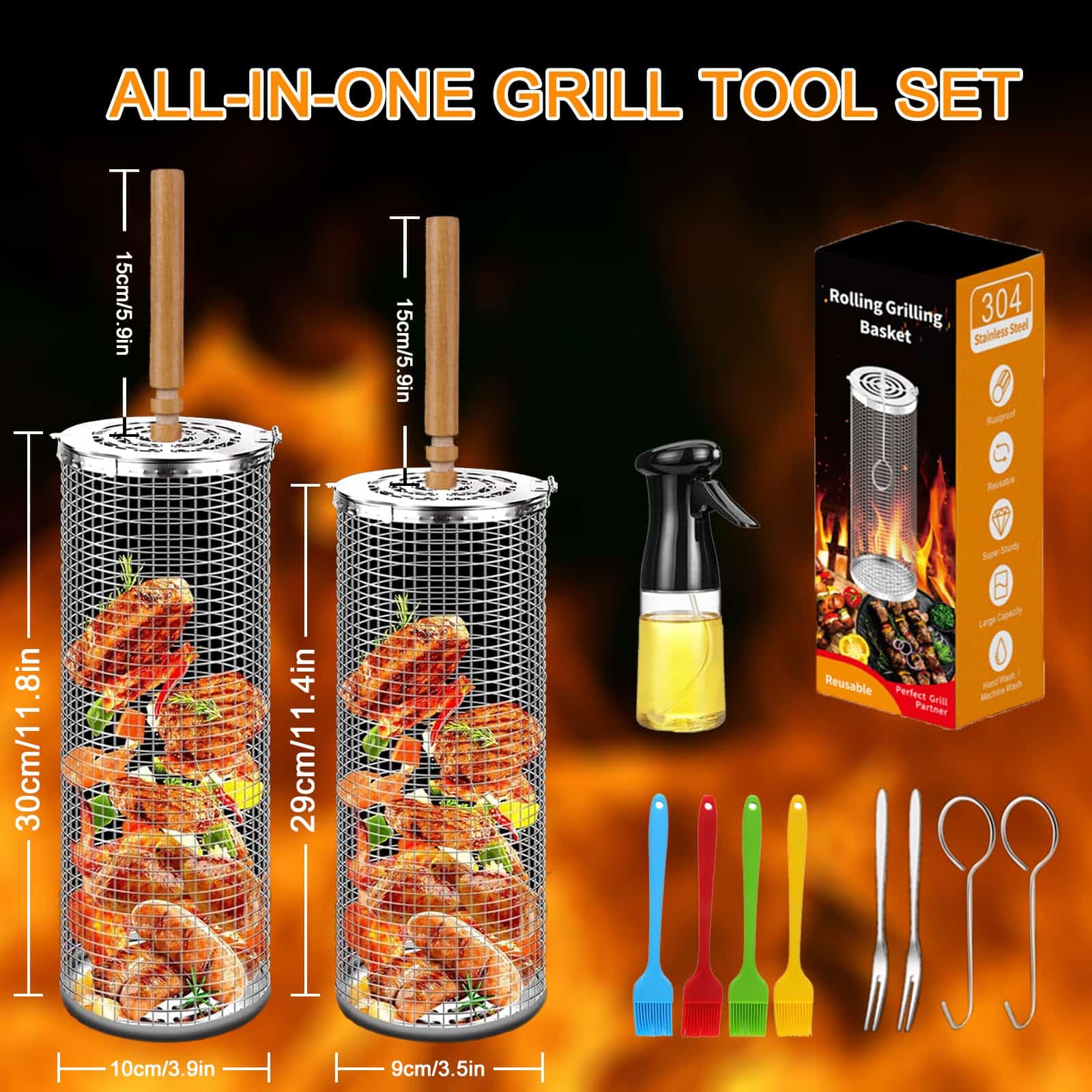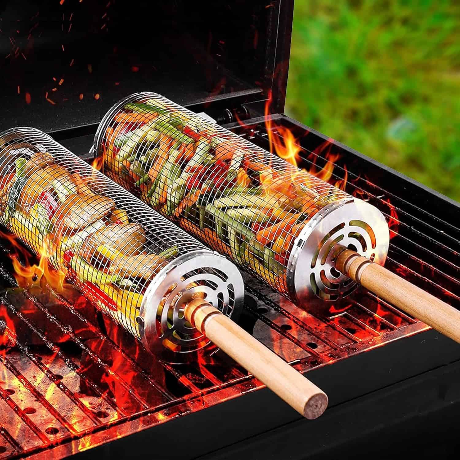 Canastas de grill rodantes para parrilla exterior 2 PZS,