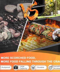 2. Asa Cualquier cosa, sin llamas: Domina espárragos delicados, cebollas, camarones y cortes robustos de carne, pollo o papas sin esfuerzo. El revestimiento antiadherente evita que se pegue, mientras que el diseño de malla evita las llamaradas de grasa para una parrillada más segura y sabrosa.