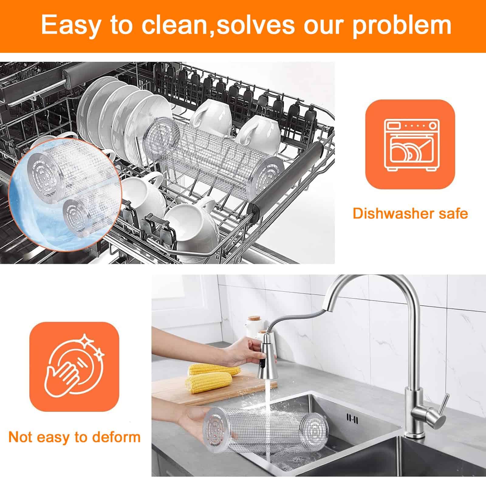 4. Limpieza sin esfuerzo en 3 pasos: ¡Carga, bloquea, gira y listo! Piezas duraderas aptas para lavavajillas y revestimiento resistente a las manchas que ahorran tiempo (¡no más fregar!) y es ideal para comidas diarias o barbacoas de fin de semana.